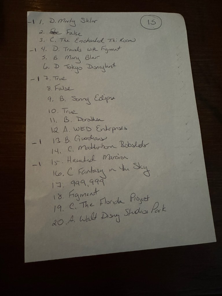 Eve decided a nap was needed, but Mom and I kept playing games. We did join in the Imagineering Trivia (although really it was mostly a Disney Parks trivia), but didn’t win.