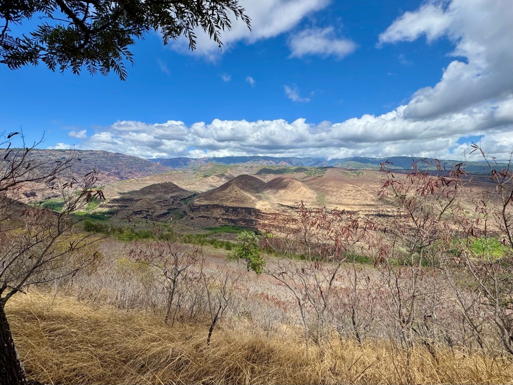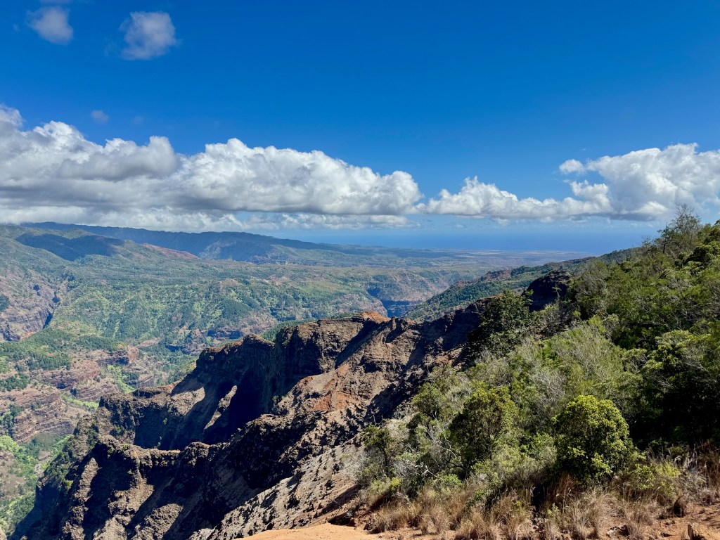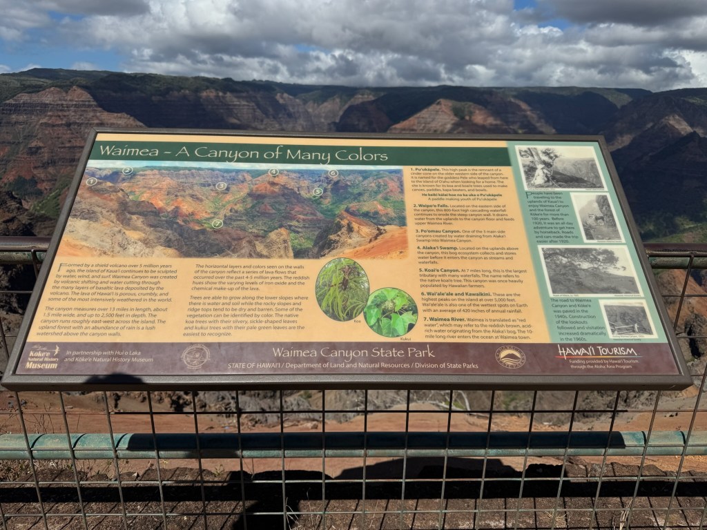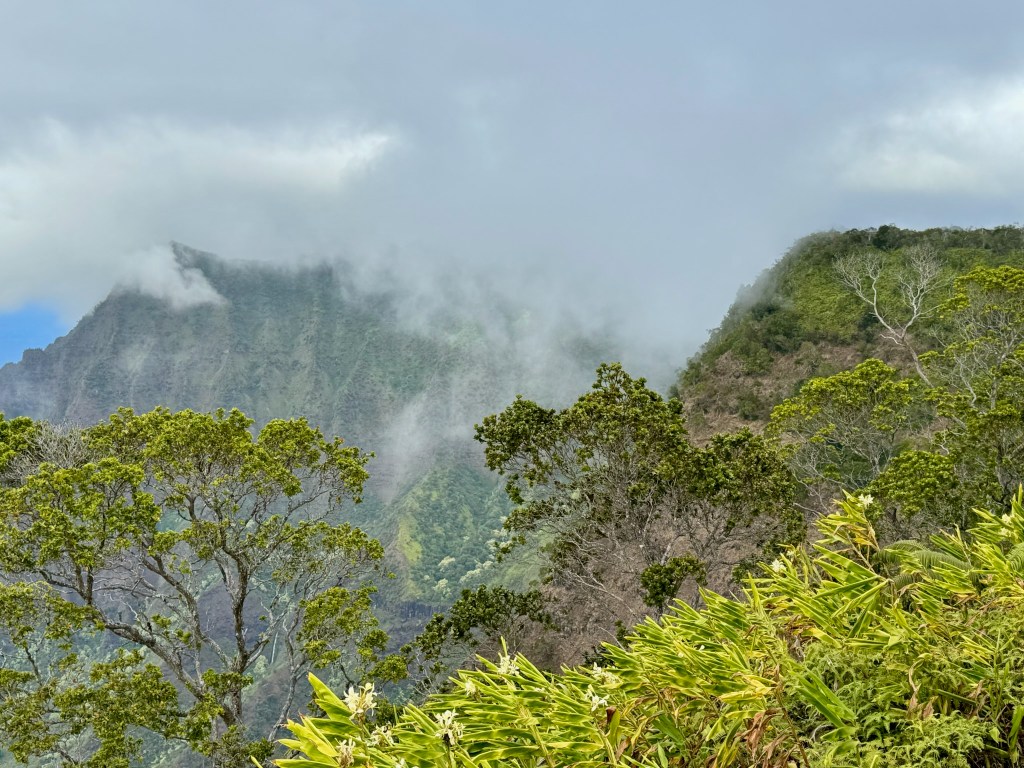 We did stop at the Koke’e Lodge and Museum for a picnic lunch then continued down the road towards Honopu and the Kalalau Lookout, which overlooks the Na Pali coast. We were higher than the clouds!