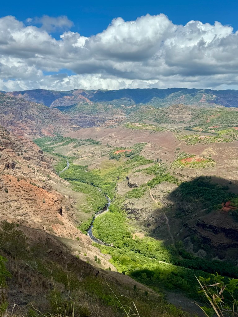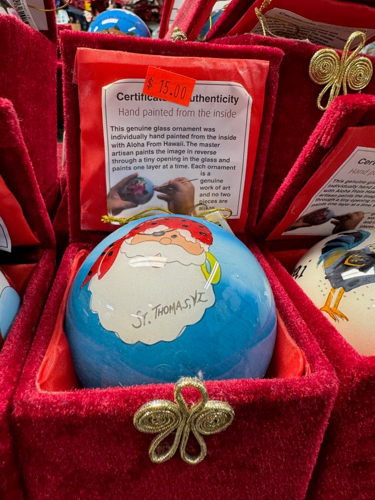 The drive back was easy and interesting with our guide, ‘Uncle Shakka’. We made another quick stop in Waimea so Eve could do a little shopping. (I did resist the urge to buy the Christmas ornament they had – which was labeled St Thomas, VI instead of Kauai, HI.)