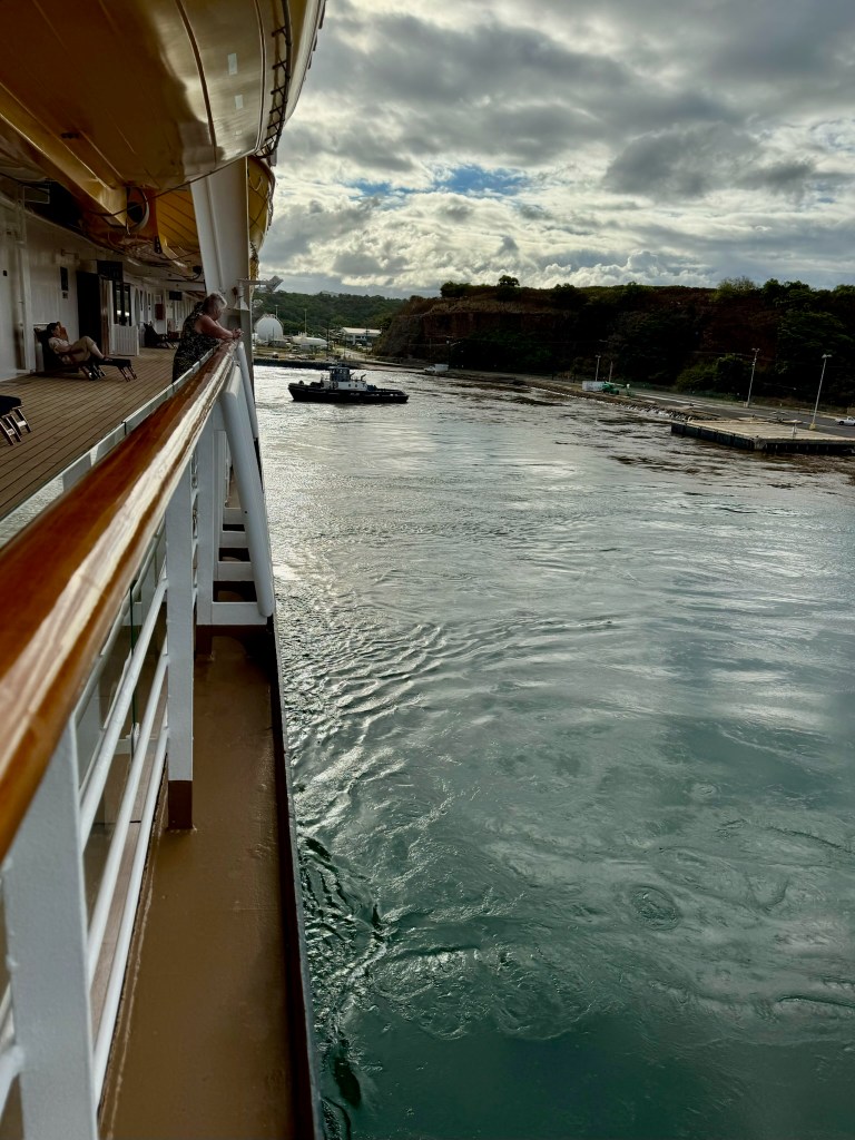 The car was safely returned to the rental company and we were safely returned to the ship by the rental company, bringing our time on Kauai to an end. Sail away was really interesting! The channel out from port looks like a zig zag, but we moved sideways until we were past the first zig, so all we had to do was zag past a couple of lighthouses and resorts, then we were at sea!