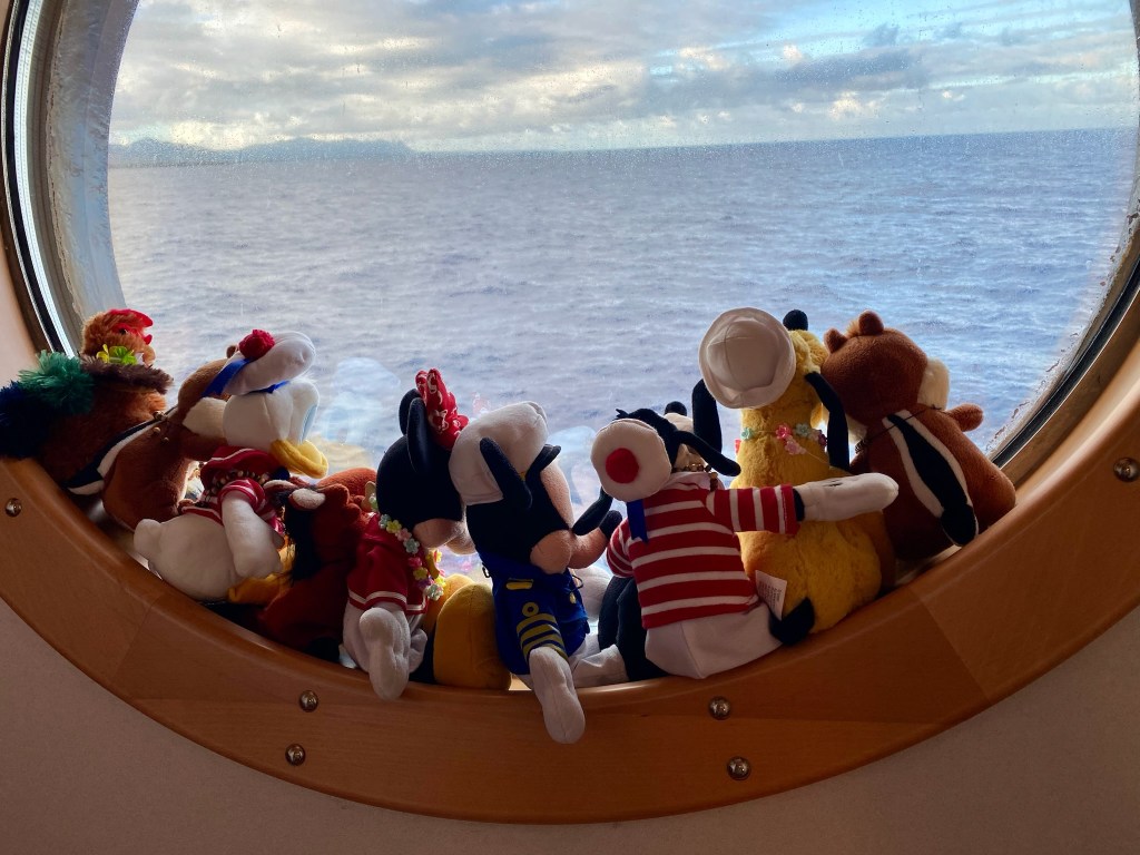 After dinner, as we were leaving the restaurant, we ran into Daisy, who told us about her wonderful day ashore! She and Donald went to the beach, and she made him carry everything – the chairs, the towels, the food and the sunscreen! After the visit, we made it back to our stateroom and collapsed, stopping just to hang out the breakfast order. Tomorrow’s going to be an early start!