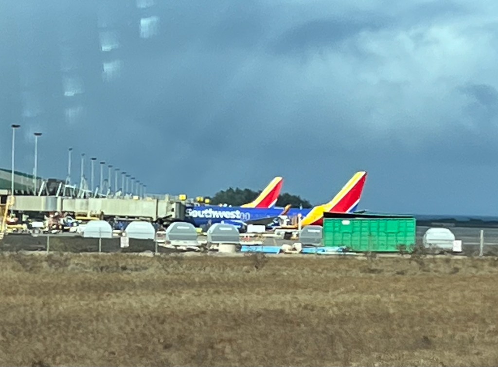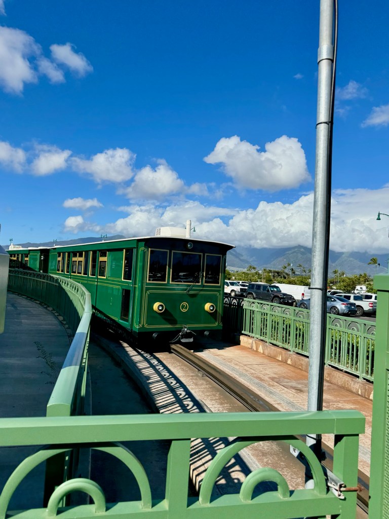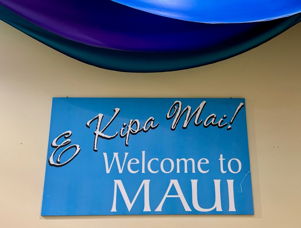 After a room service breakfast, we hit the gangplank as soon as it opened up, grabbed a cab to the Kahului airport so we could get our rental car. On the way to the airport, the taxi’s radio provided a reminder that the Tsunami warning system would be tested at 11:45 today. Which was good to know – had we heard it, it would have been disconcerting! Upon arrival, we had to take the train to the car rental terminal. (We also saw some pretty planes!)