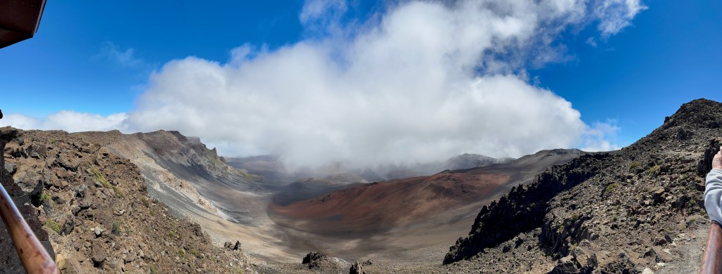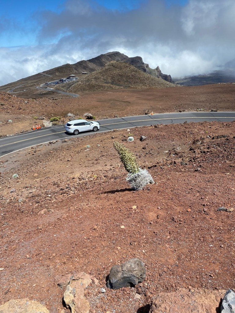 Picking up the car was a bit of an adventure, but three cars later, and a complimentary upgrade to a full-size SUV, we were finally on our way. Today’s Shaka Guide tour is to Haleakala National Park! While only a few miles away as the crow flies, with the 20+ switchbacks, the trip up and down the mountain is almost 40 miles of driving. Mostly at 10-15 miles an hour.