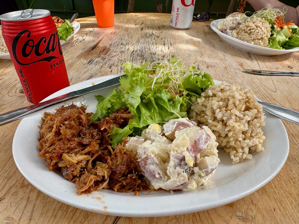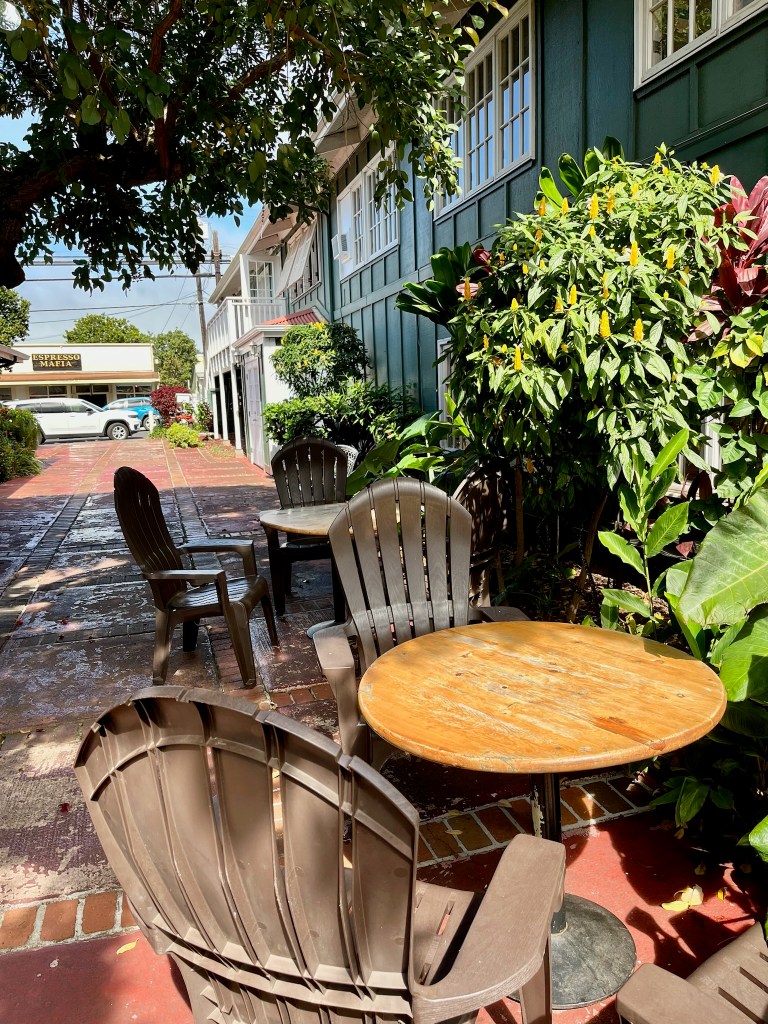 We stopped at the town of Makawao. It has several artisan shops and a great little restaurant Freshies where we had amazing pulled pork in a lovely outdoor seating area, under a huge tree. We wandered through a couple more shops before returning back to the airport, and on to the Wonder. We also met Puff (of Bodega Cat fame) in Rodeo General Store.