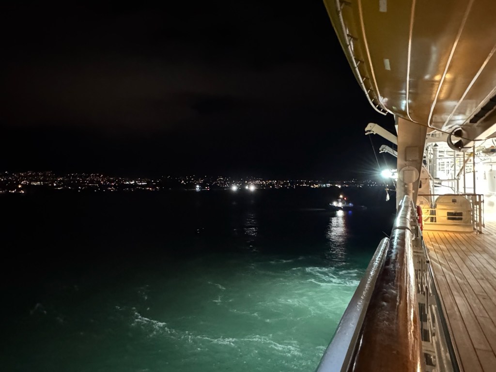 After dinner, Eve and I went up to deck 10 for the Wayfinding session, led by Uncle from Aulani. It was amazing how many stars we could see, especially since the lights in that section of the ship were turned off for us. He walked us through some of the basics of navigation by the stars. And tonight – maybe we’ll dream of them!