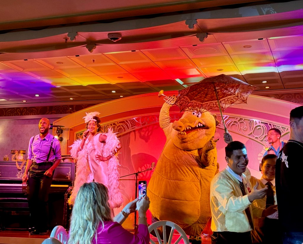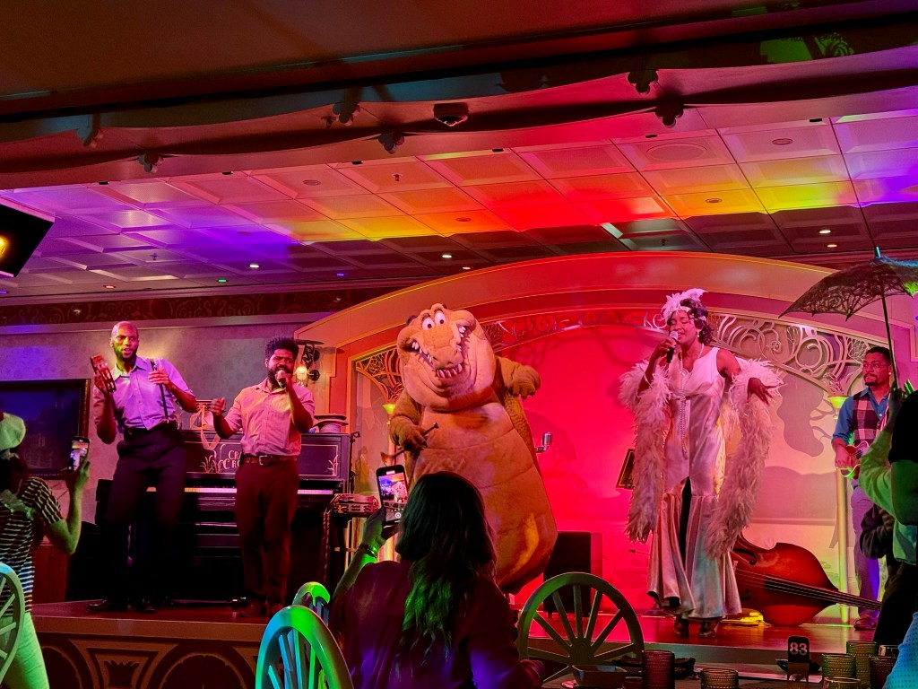 Dinner tonight was at Tiana’s Place. We had a lovely meal with good food and great music. The Crawfish Crooners are a hit! Their rendition of “Ma Belle, Evangeline” was especially pretty – and Tiana danced with a young man from the audience (jr high age). At the end of the meal – we celebrated Mardi Gras! The wait staff put on a big parade, then led a round of limbo.