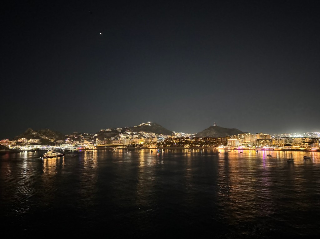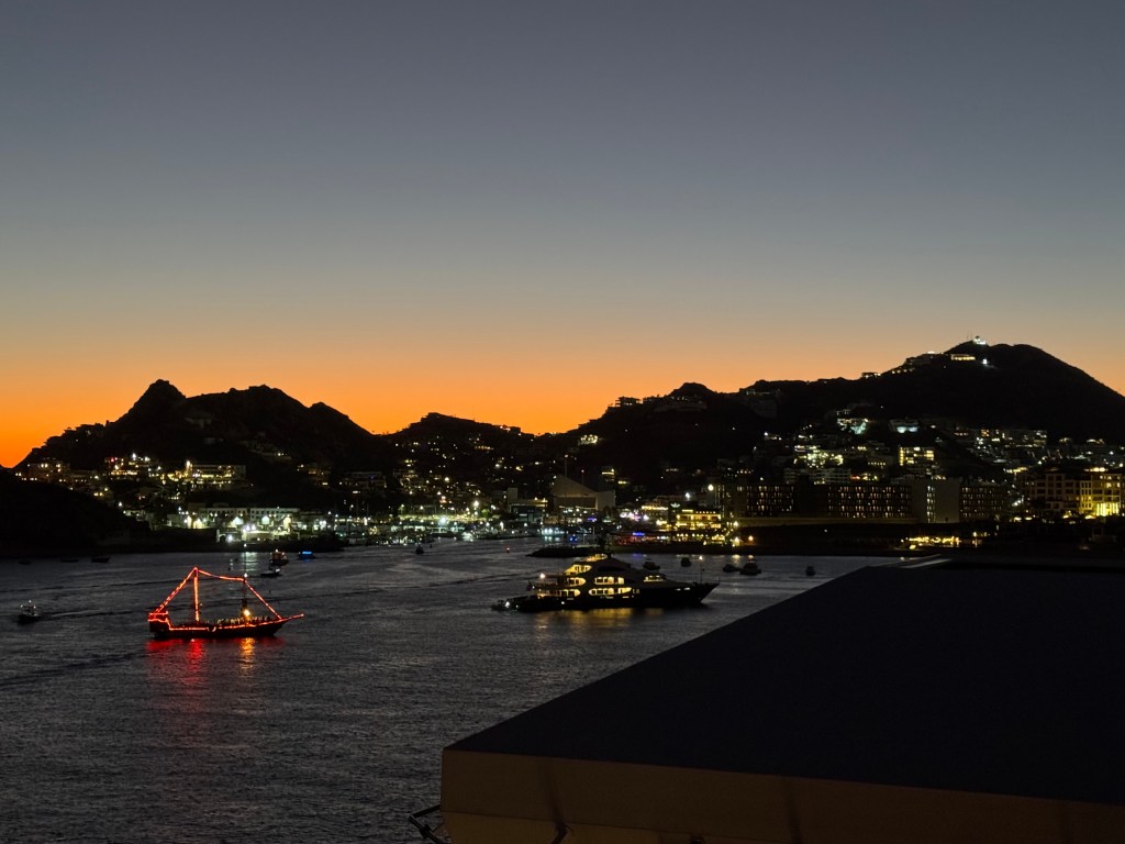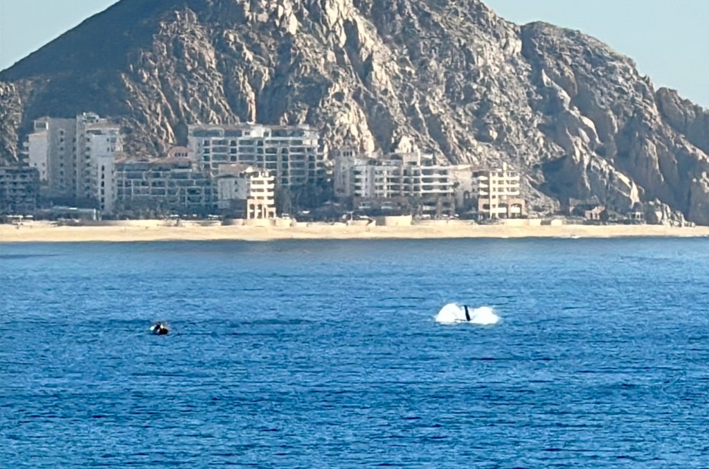 Morning! After breakfast at the Cantina, we enjoyed the welcoming committee as we sailed into Cabo!