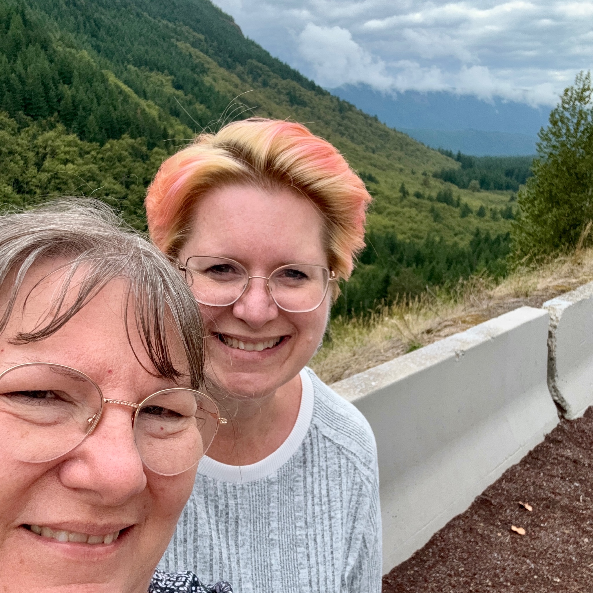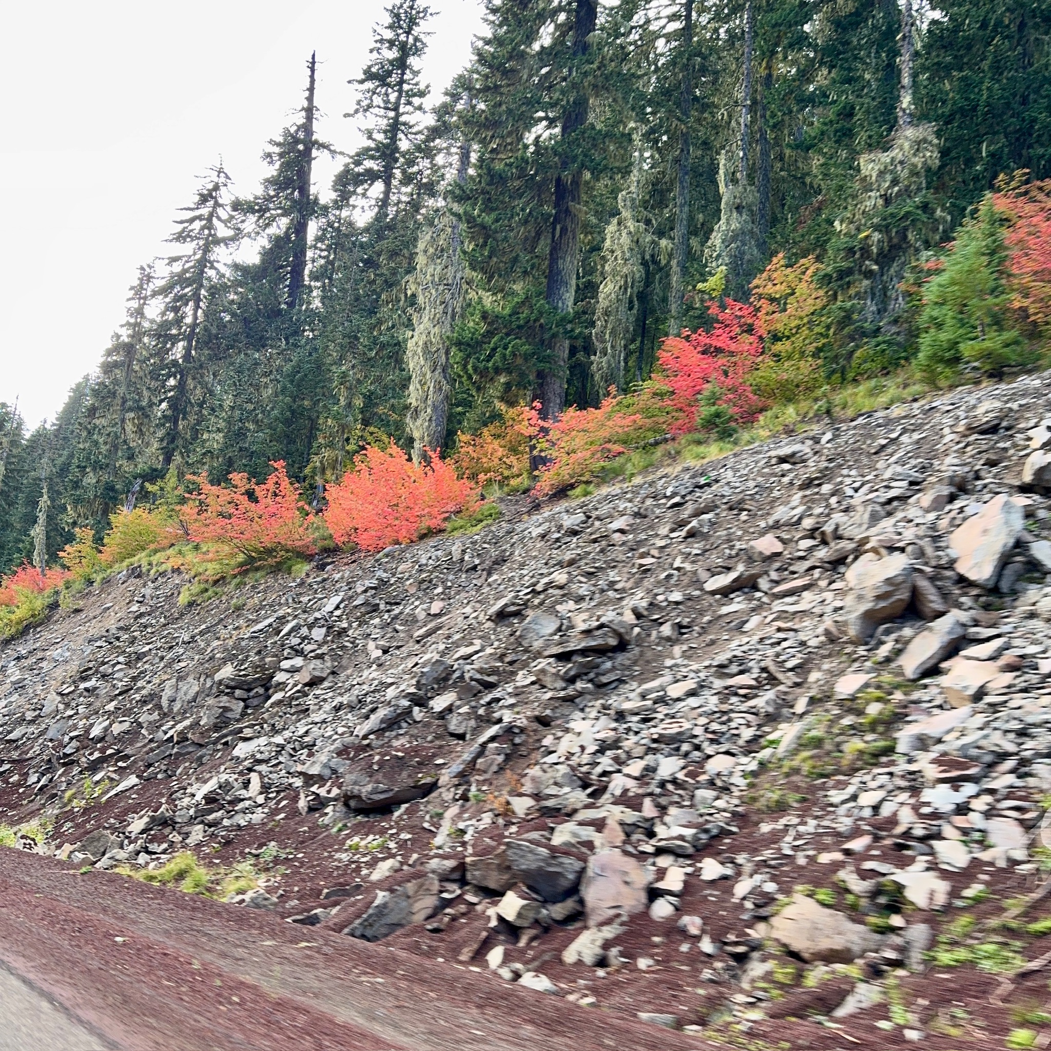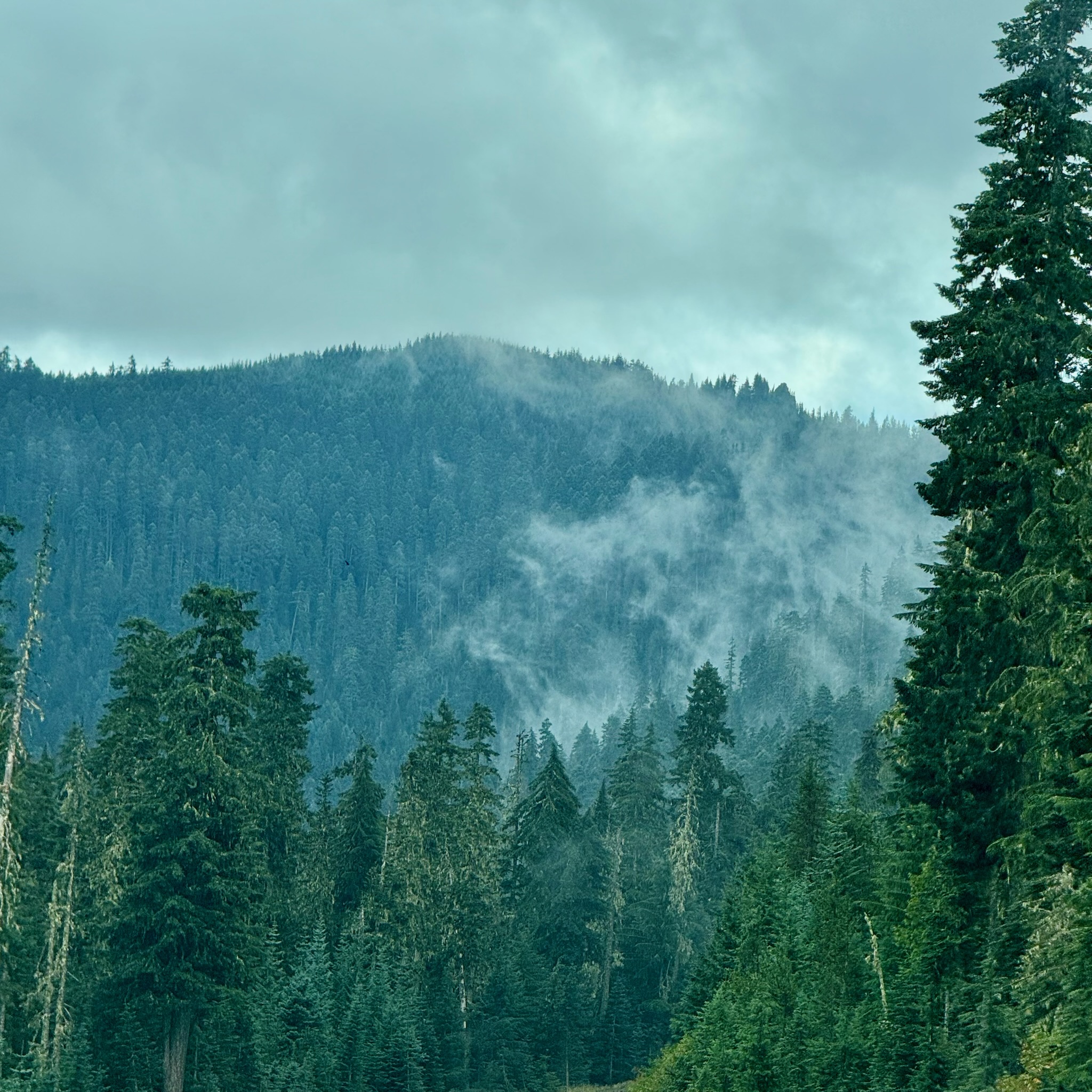 Fresh coffee in hand – we’re off to Portland, around Mt. Hood. We were in and out of the clouds, literally.