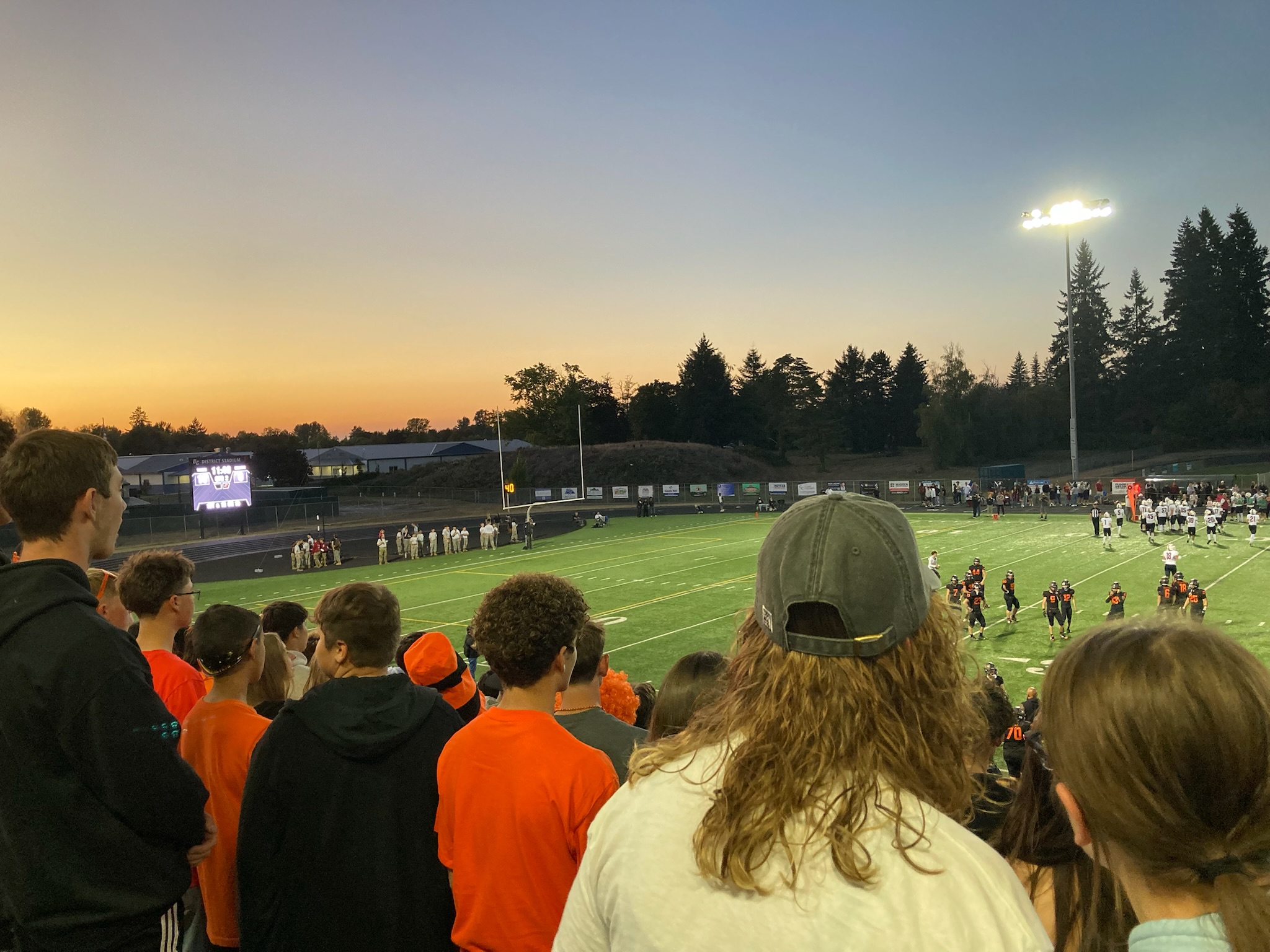 It was a long day of flying. DAL to PHX, with a scheduled 3 hour layover (that became almost 4 hours because the first officer was late), then PHX to PDX. Bekah picked me up, we grabbed a quick dinner at Burgerville (we’ll be back soon!) then headed to the Battle Ground HS football game to watch Joshua conducting for the first time!! Sadly, by the time we got there, the only seats were behind the seniors, who stand the entire game – on the plus side, we were two rows in front of the band!!