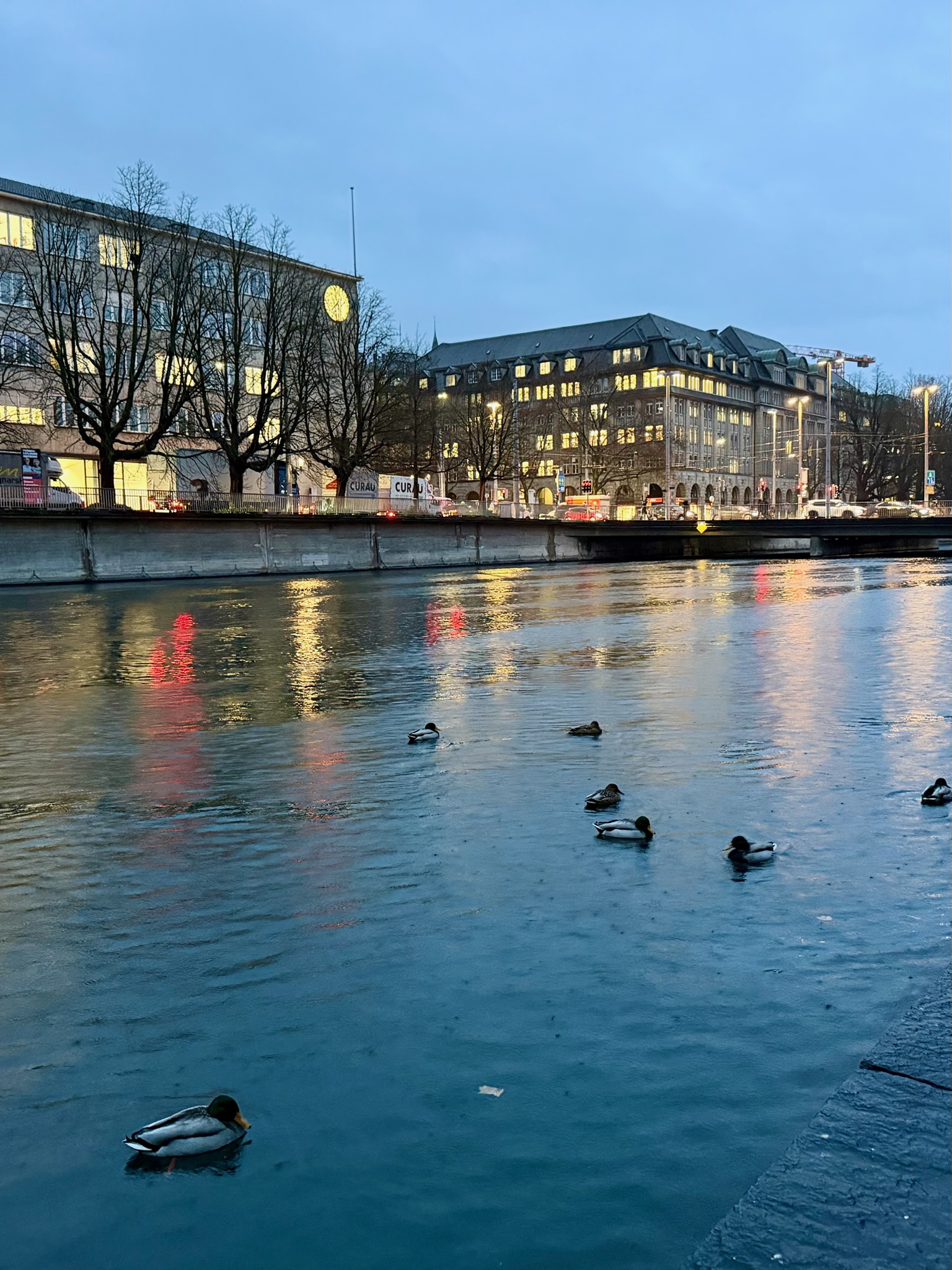 We were neither one super hungry, but knew we needed some dinner, so stopped at Coop, a grocery store across the River from our hotel, and grabbed a couple of pretzels, soft cheese, waters and Coke Zeros to picnic back in the room. Tomorrow, we explore Zurich – and more importantly – we don’t have to set an alarm!