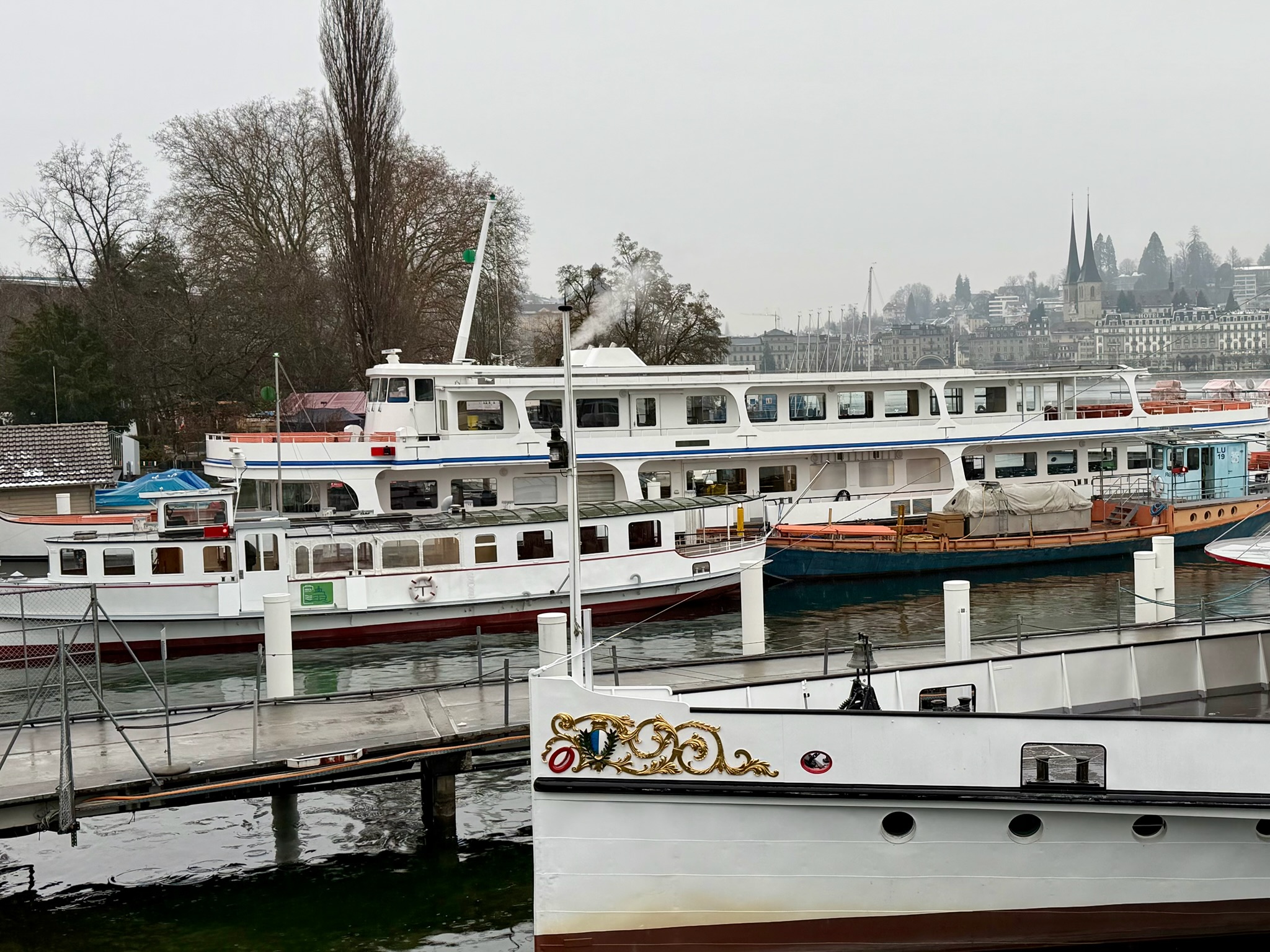 He dropped us off near the shipyard and walked us over a bridge along the lake to KKL Lucerne, the Culture Center, the first stop on the map he provided, then set us free with two hours to explore.