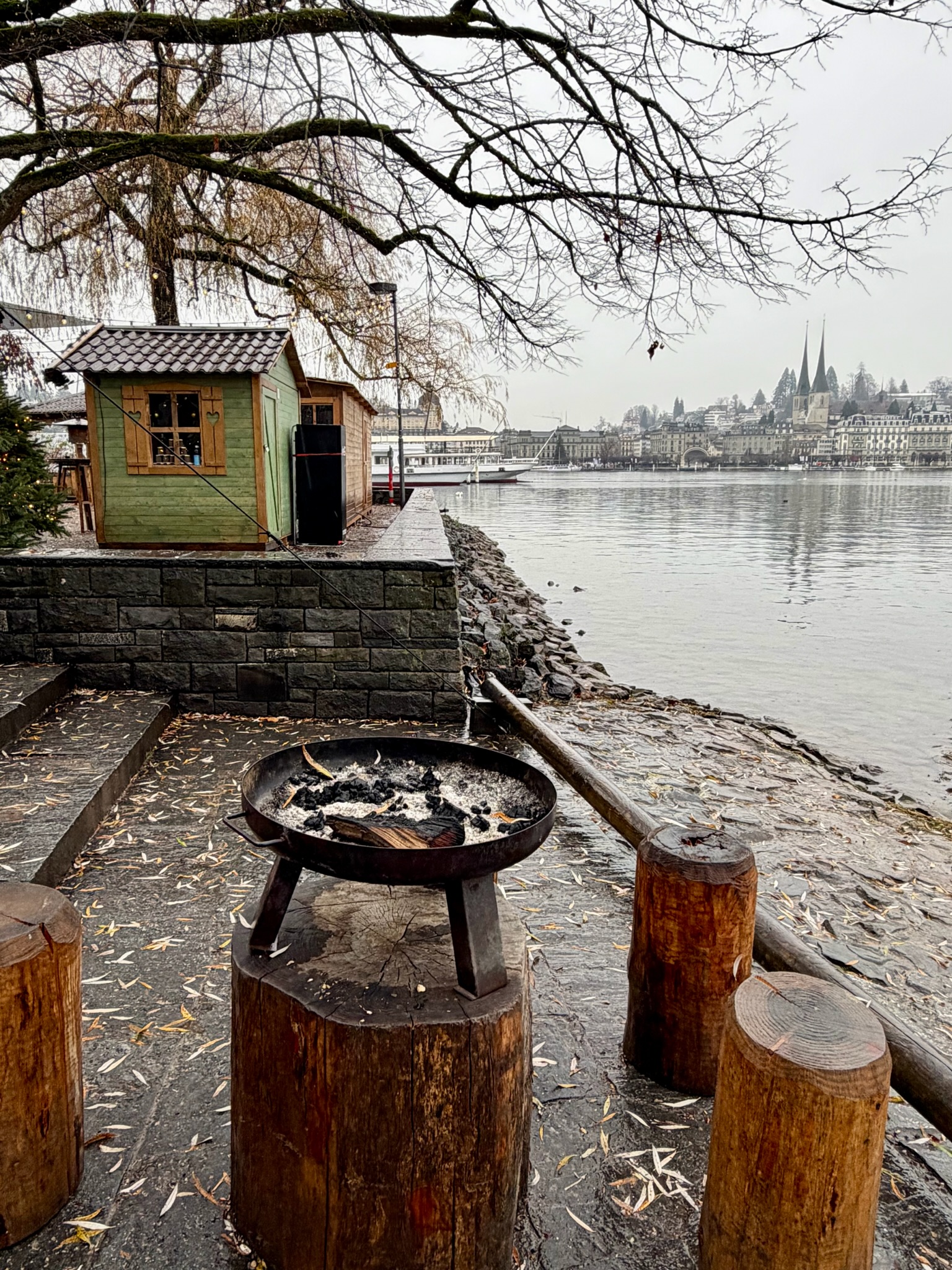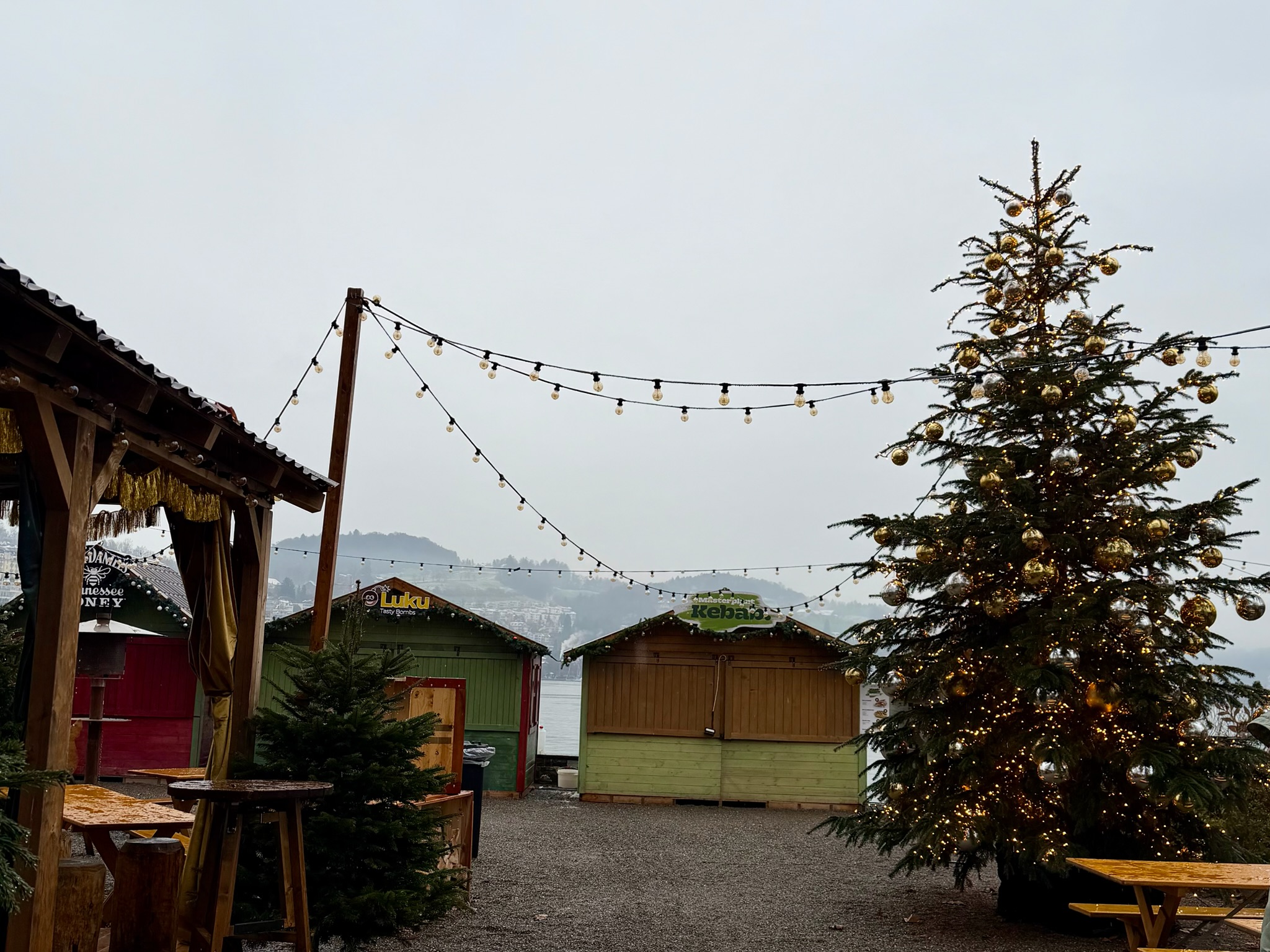 Most everyone hurried off, but we decided to walk along the lake, through the (closed) Christmas Market. It was fun seeing some of the interesting offerings (a Jack Daniels Honey stand??) and a lovely walk.
