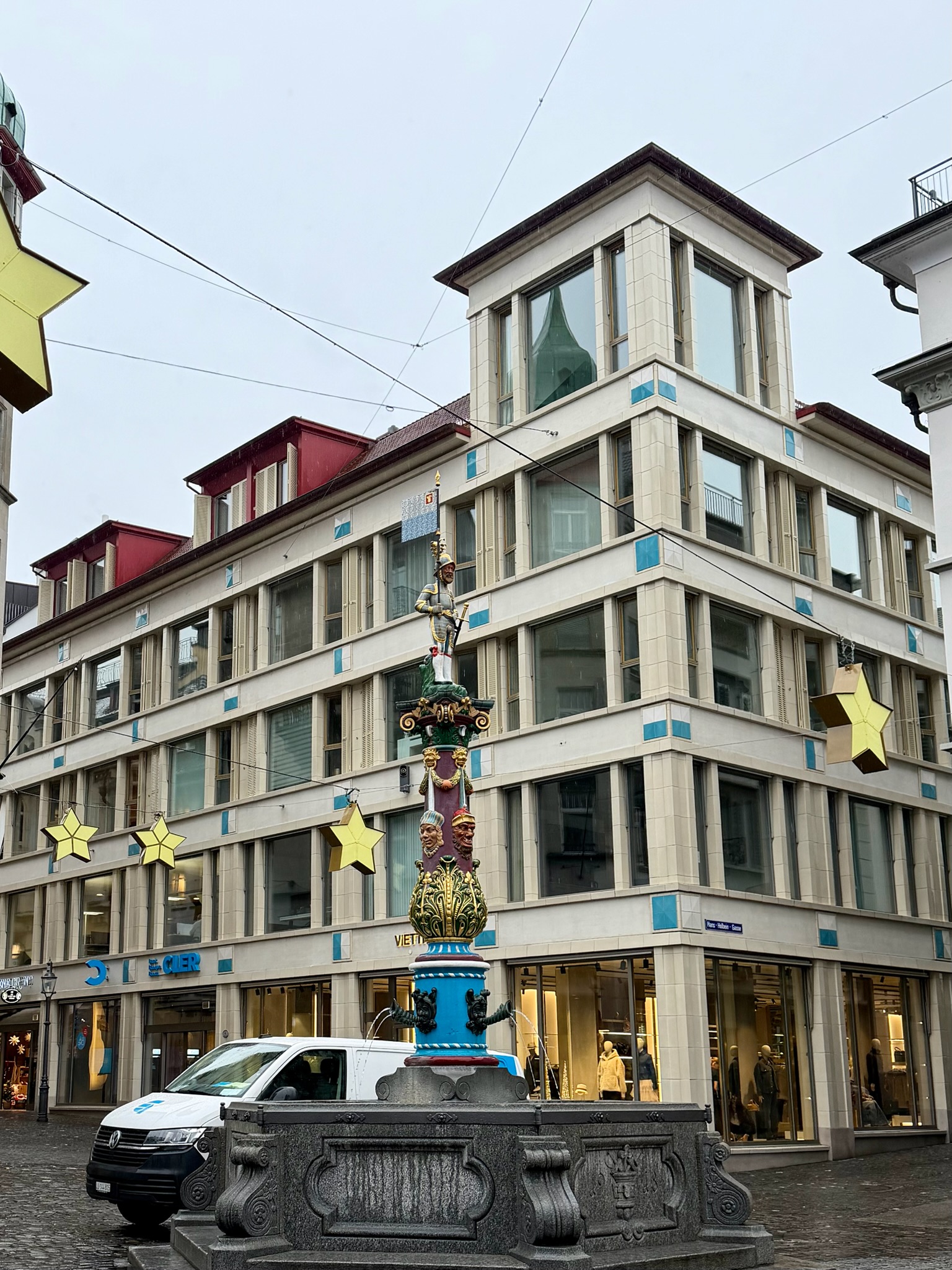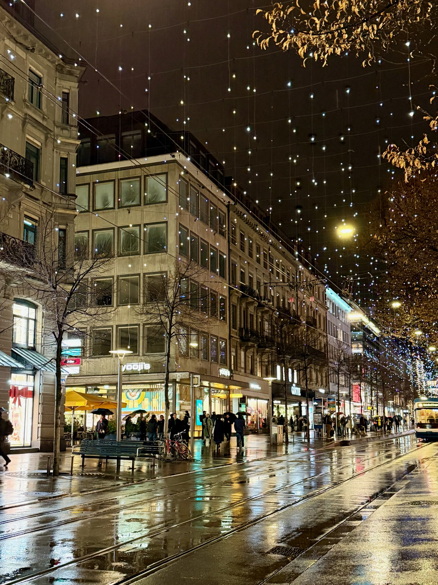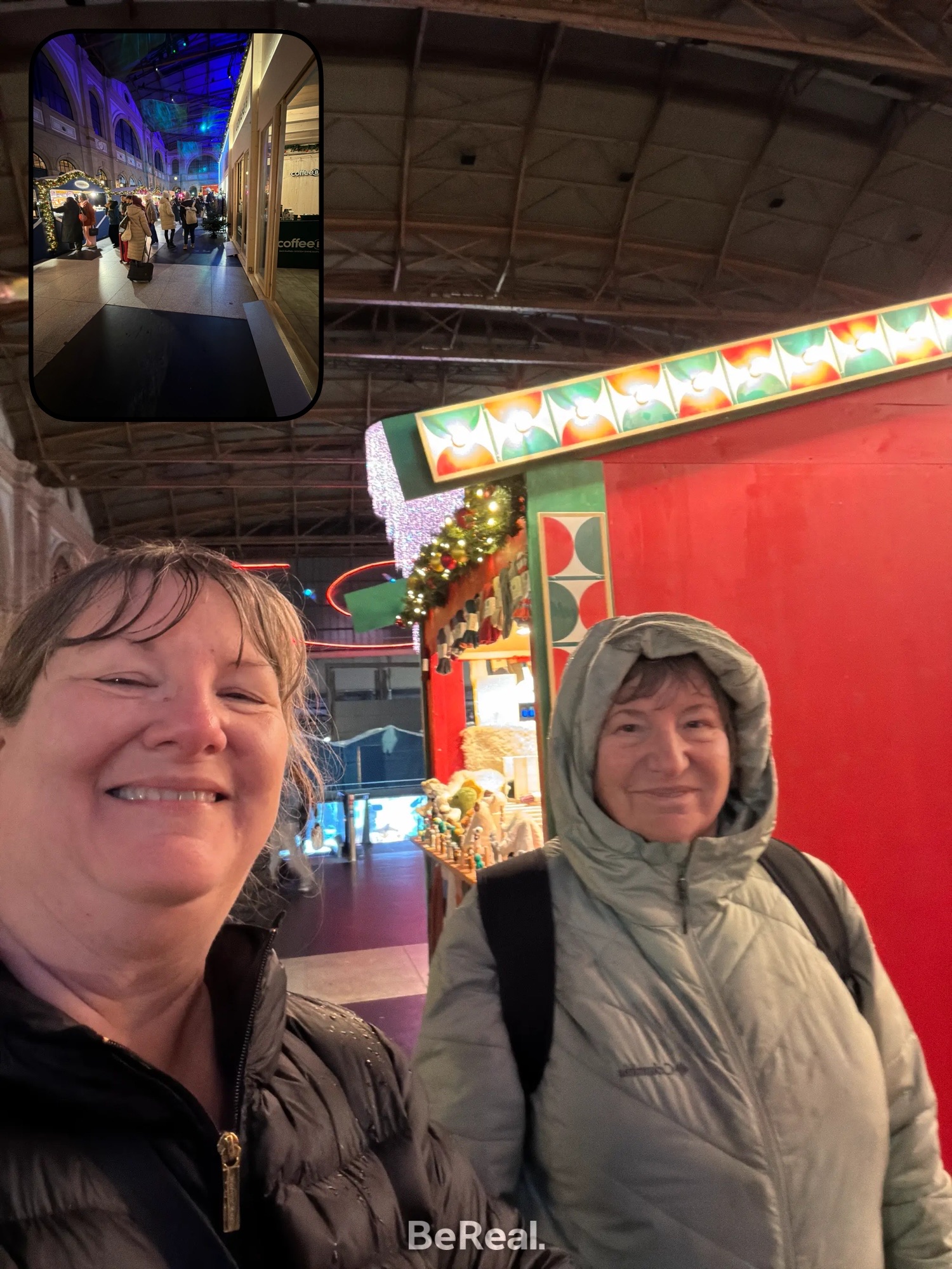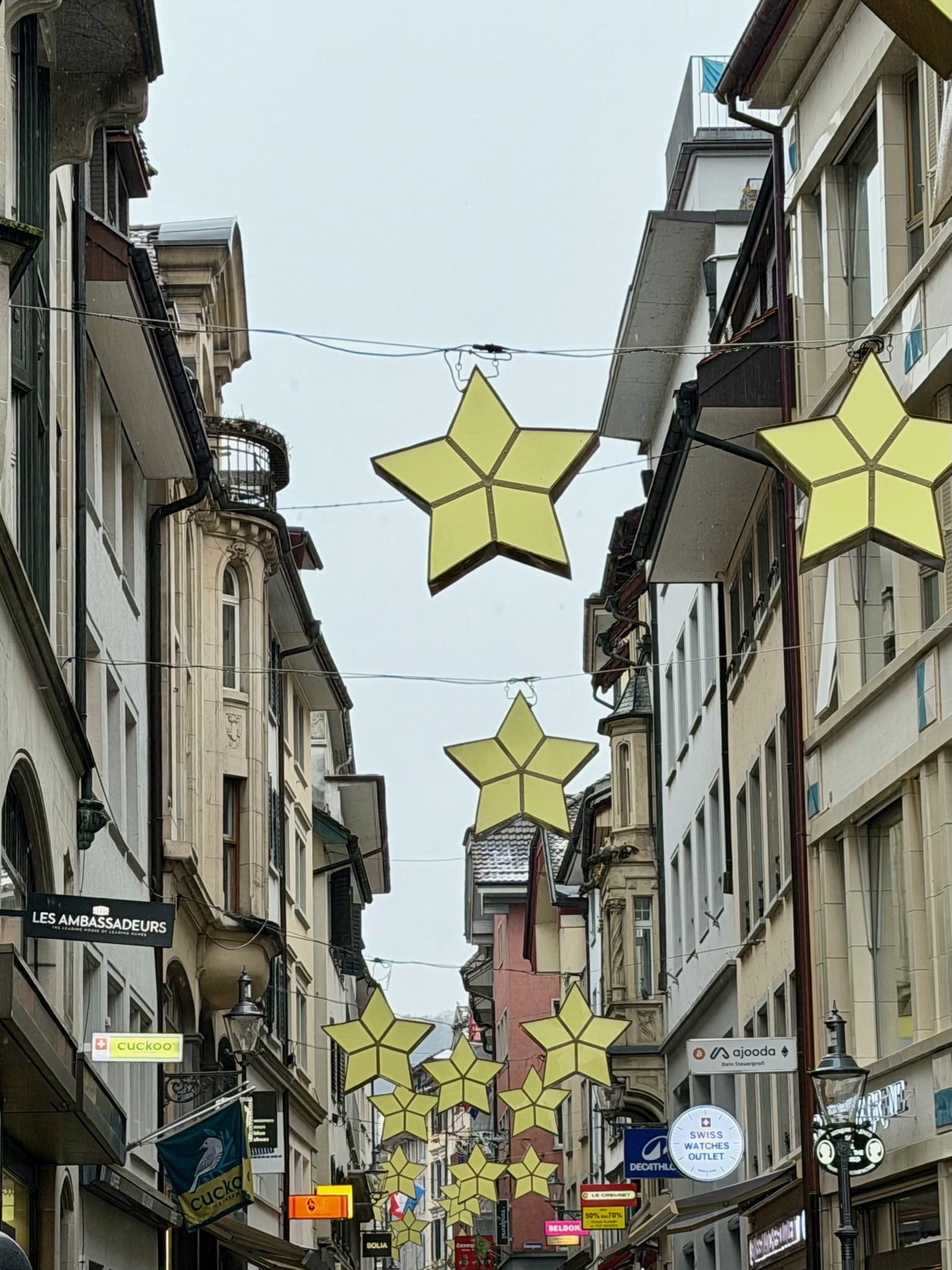 We arrived back in Zurich around 6:30 – 10 1/2 hours after we left. But it was a fantastic day! (Even if we looked like drowned rats most of the time.) On the way back to the hotel, we stopped at the train station for their indoor Christmas Market.