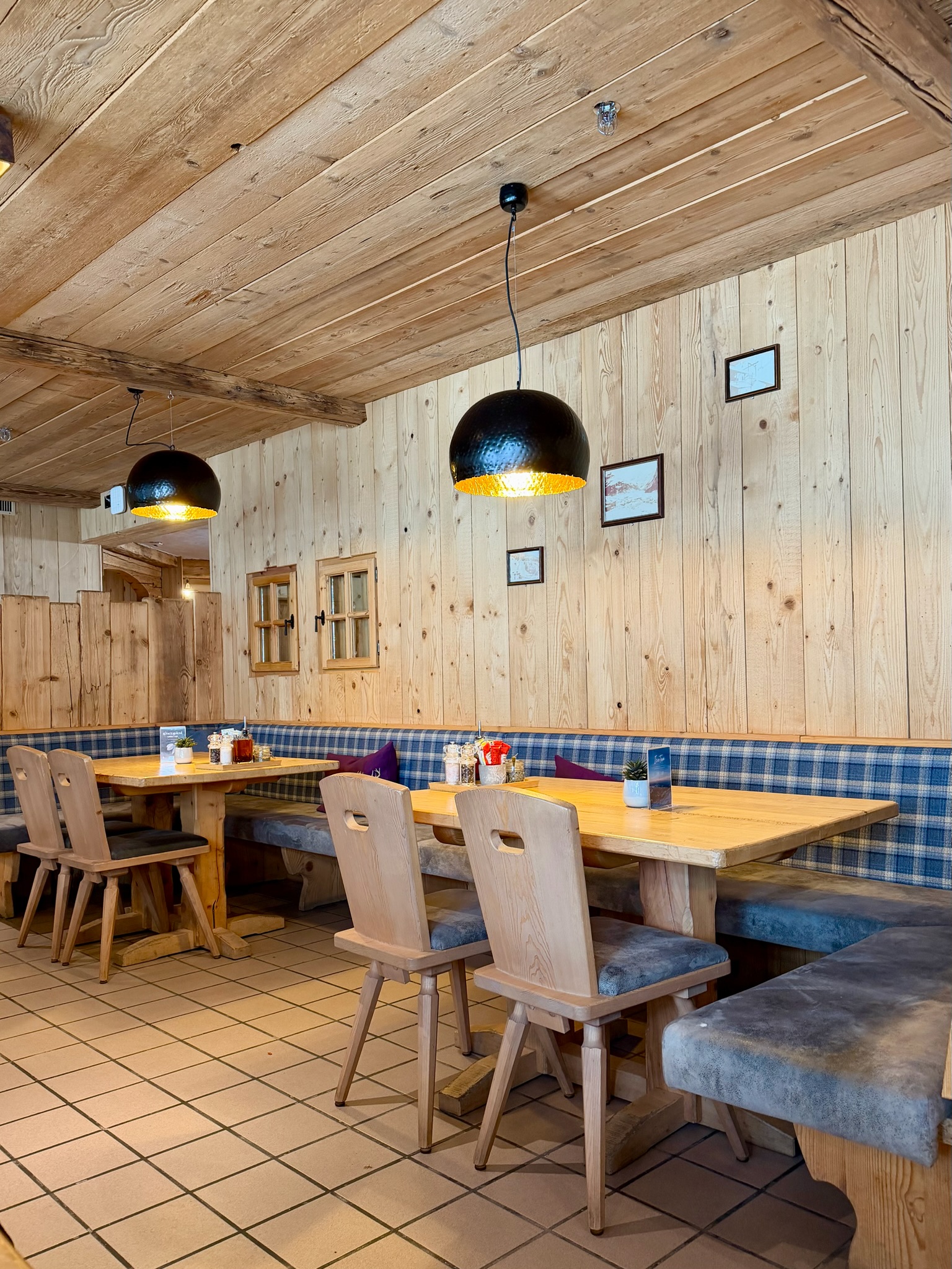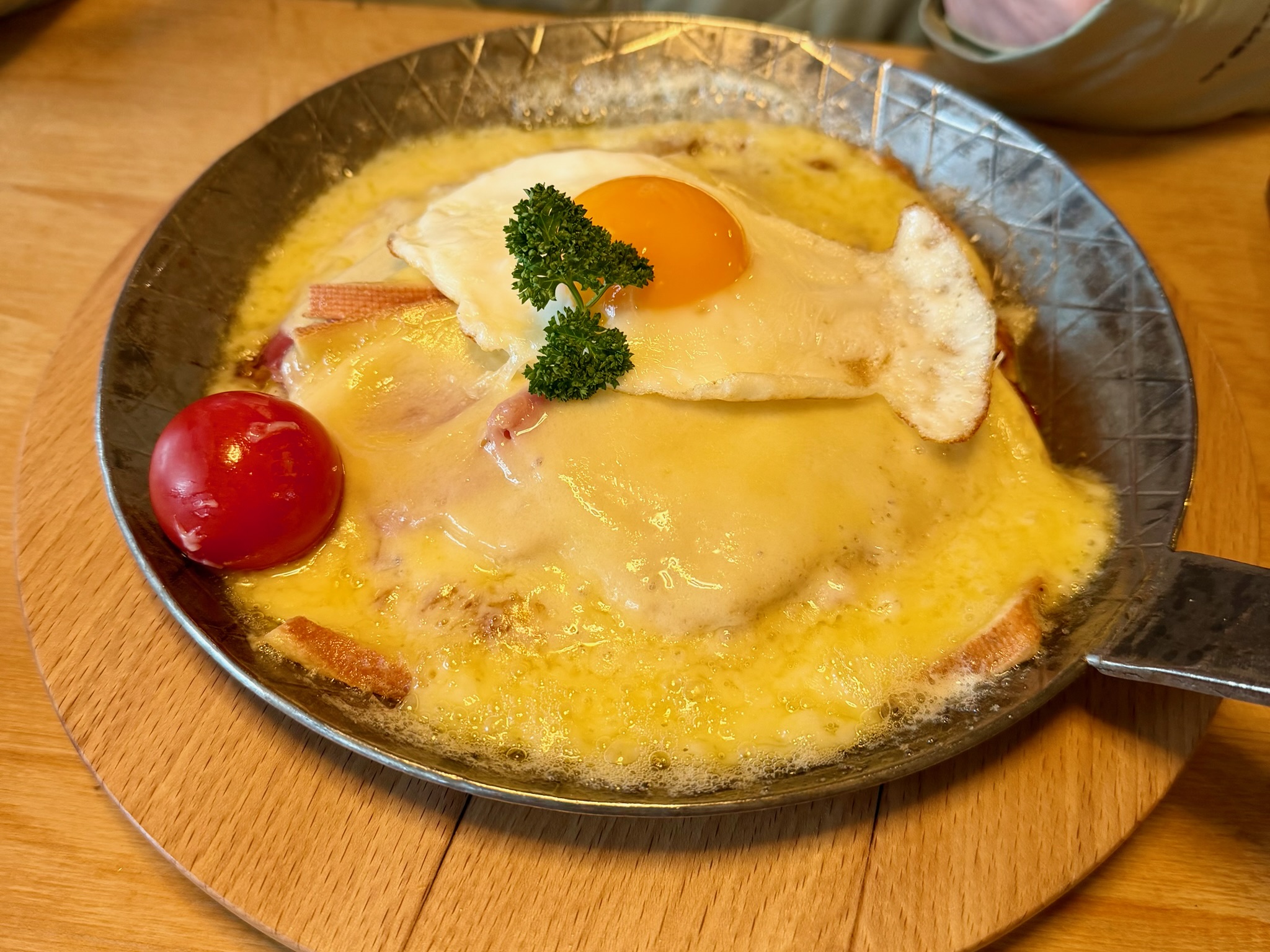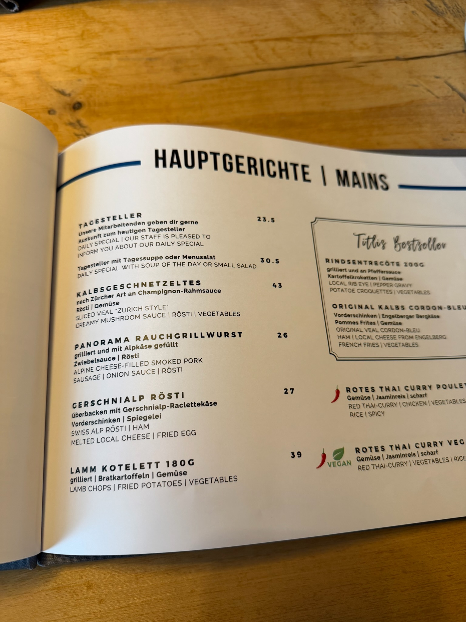 We had time to kill and we were starving! The restaurant at the observation building was just what we needed! Mom had the Gerschnialp Rösti – a huge potato pancake with ham, Raclette cheese melted over the top, and a fried egg.