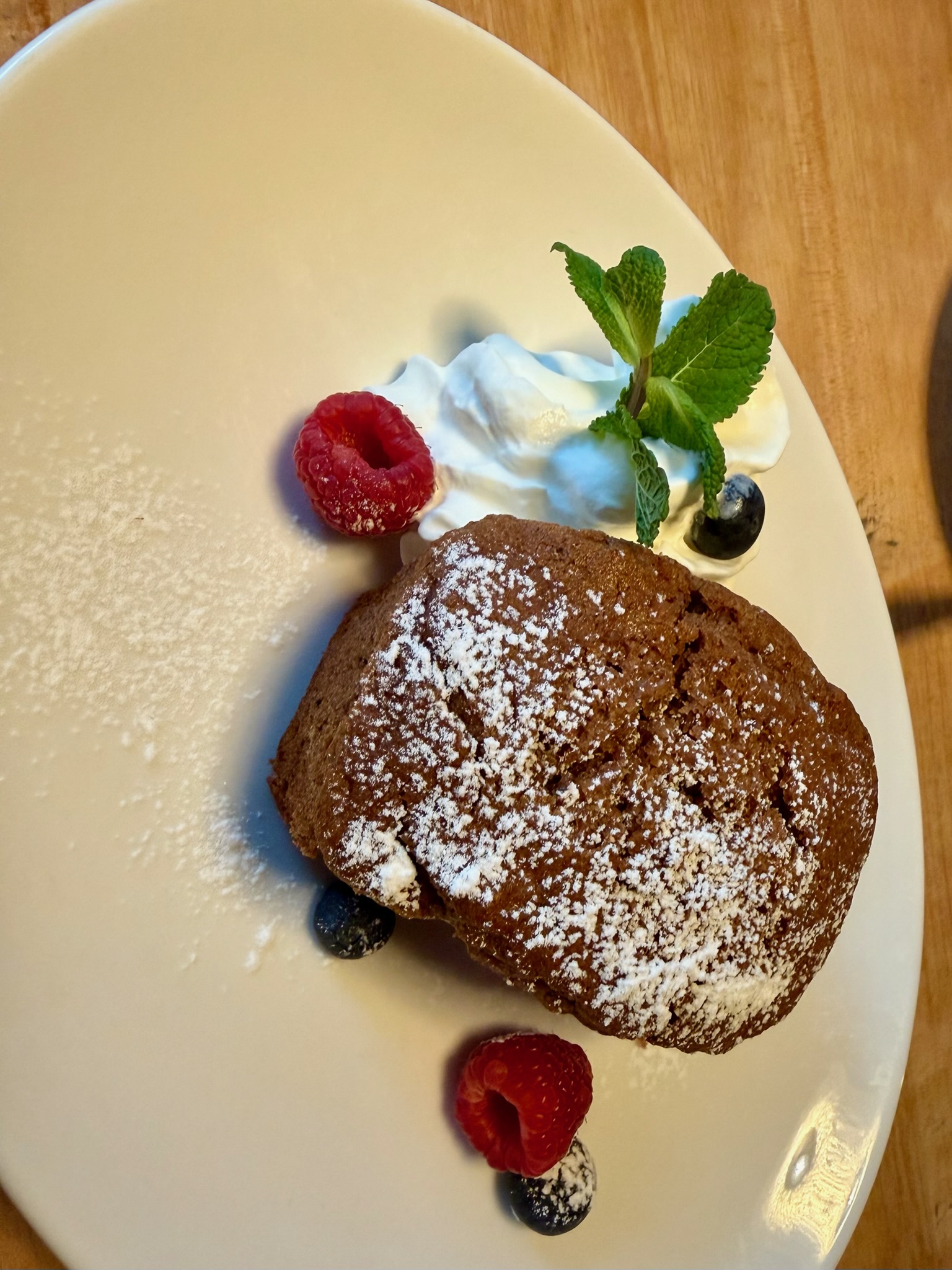 Dessert was Lebcuchen that we shared – which here meant a mini-gingerbread loaf. (Most places in Germany, it would mean gingerbread cookies.) It was dense and ginger-y and so good!