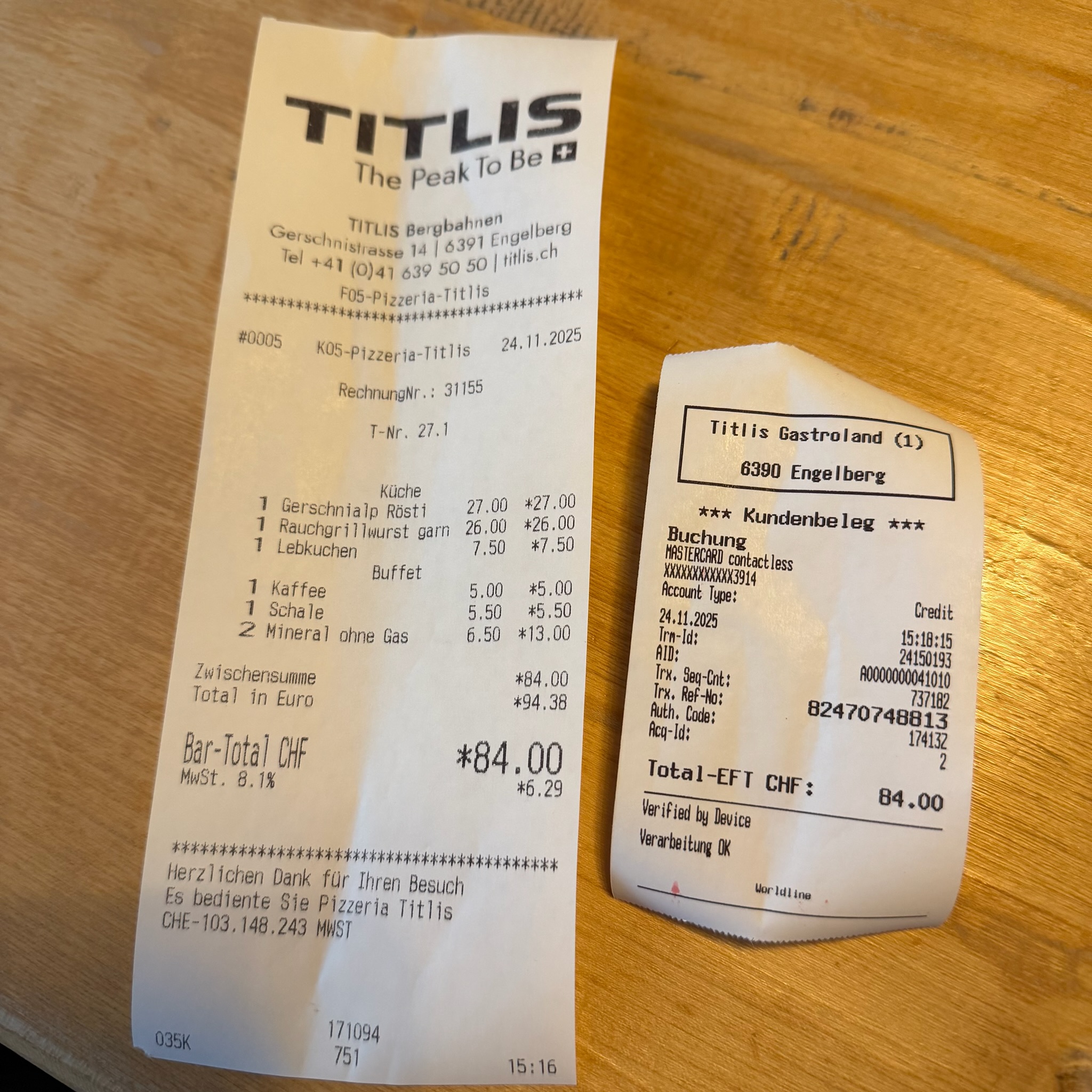 We had time for a quick latte before boarding the bus and heading on to our next stop – Mt. Titlas! Leaving town, I checked the outside temperature: 7 degrees Celsius.