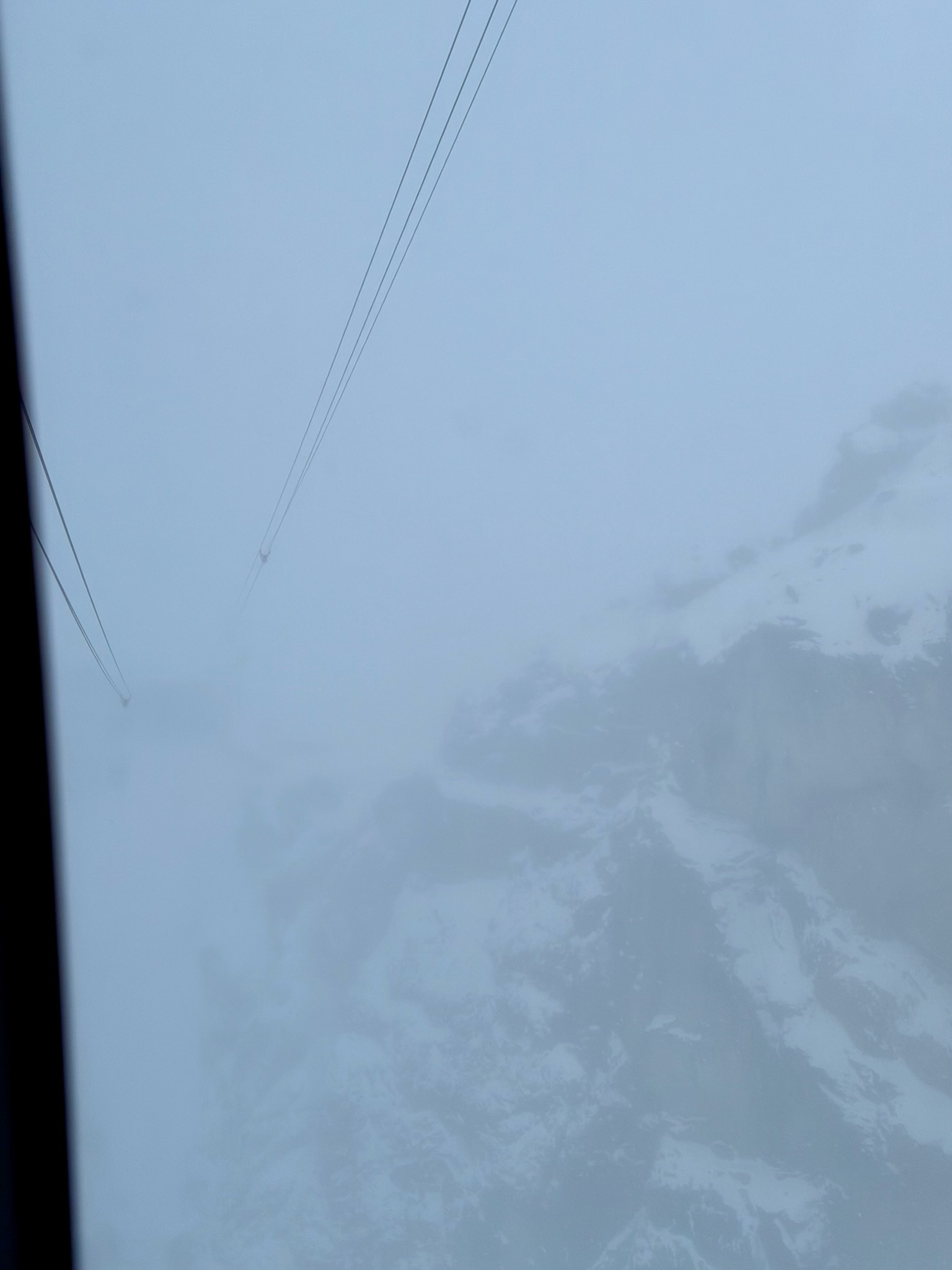 Then a huge 64-person gondola that take you up the final 5 minutes. It’s supposed to rotate, but the winds were too strong for it to do that today. They also weren’t allowing any skiers on the mountain, either. Or the Alpine Flier (a 10 minute ski lift ride across a glacier). Or the suspension bridge between two peaks. On the bright side, Viator automatically refunded a portion of our tour price because so much was closed at the mountain. And honestly, if the wind was that strong, I’m not sure I would have been brave enough to walk across the suspension bridge.