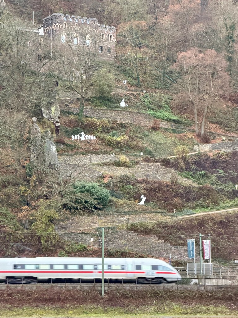 A couple of WWII related facts: 1. Hitler would have train tunnels disguised as churches and old castle ruins so they were less likely to be bombed. 2. All the bridges across the Rhein were destroyed and not rebuilt. Today they rely on ferries to cross the Rhein in the valley.