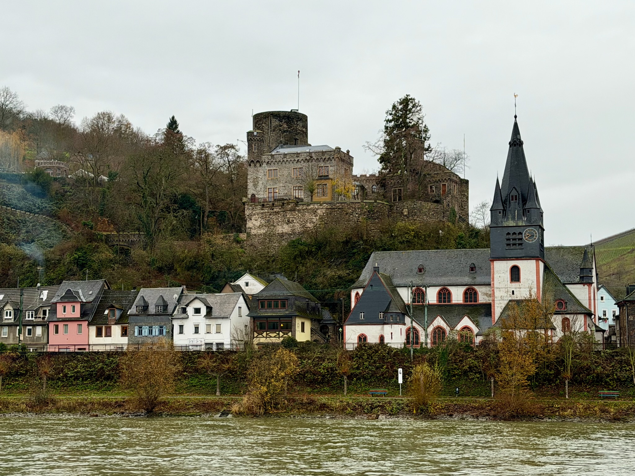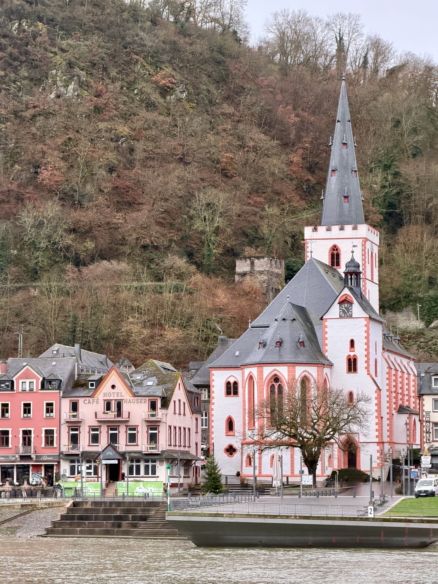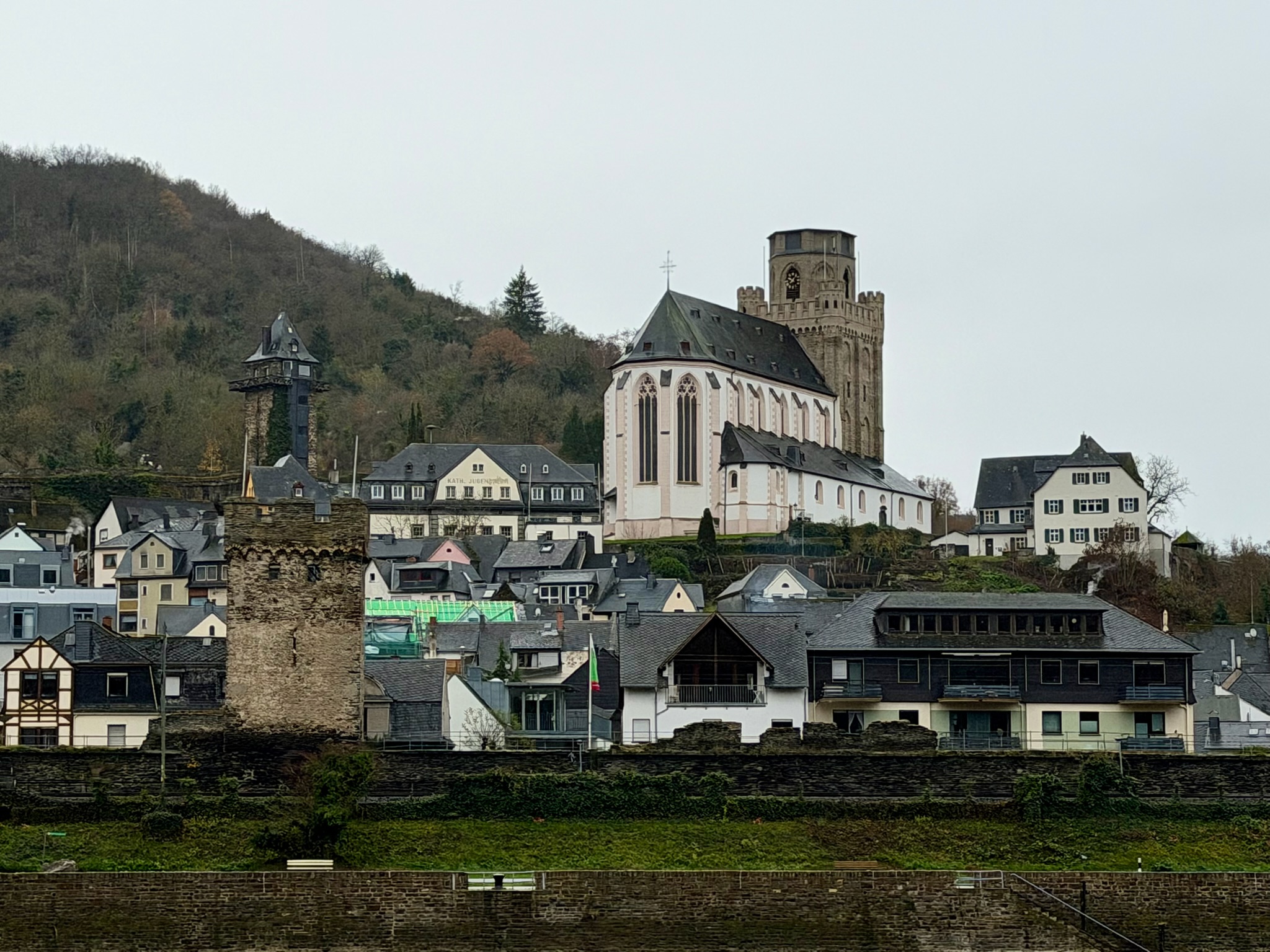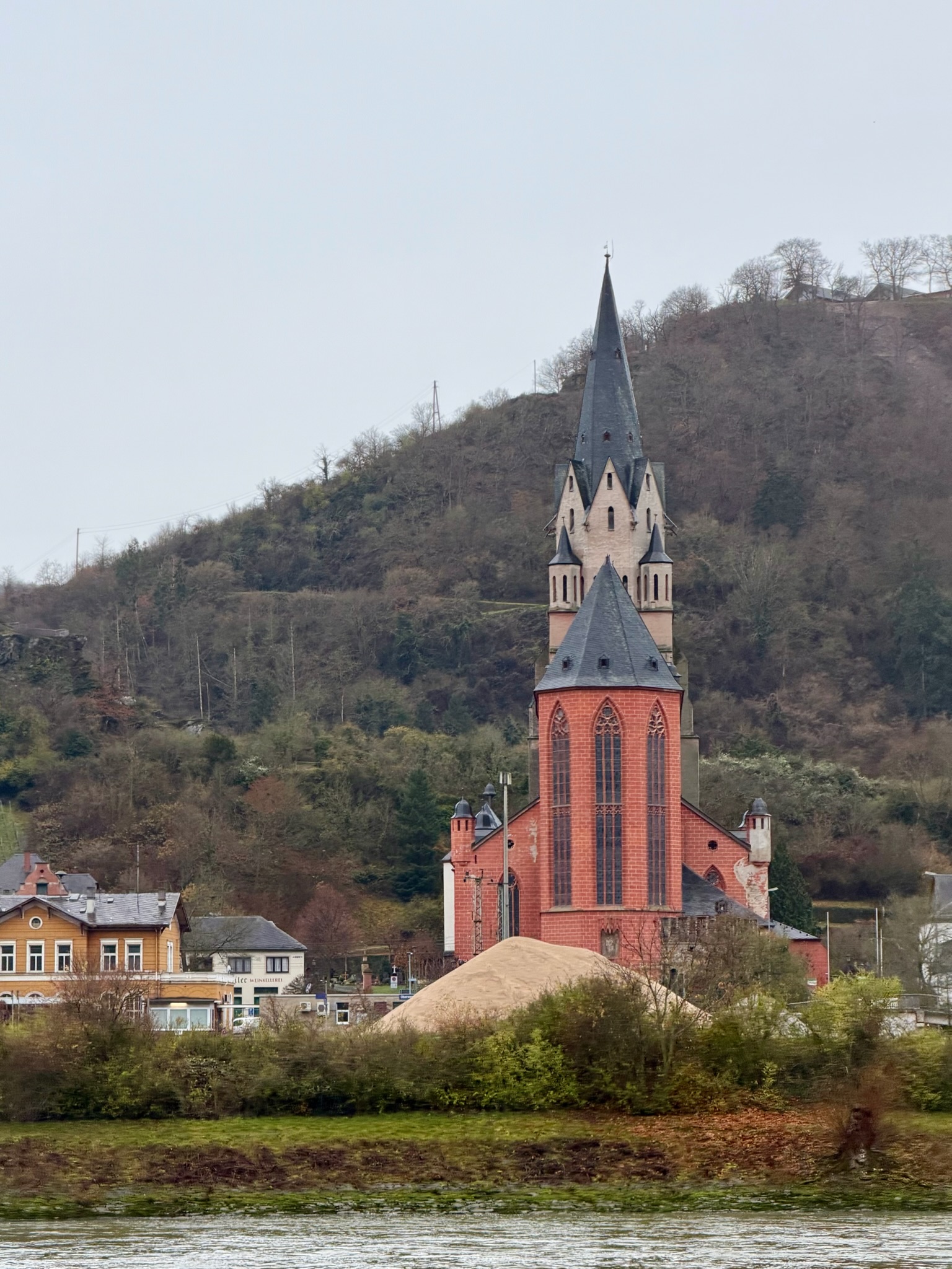 Next up, Kaub, a village with 18 towers and a church that looks like a rocket ship from the right angle!
