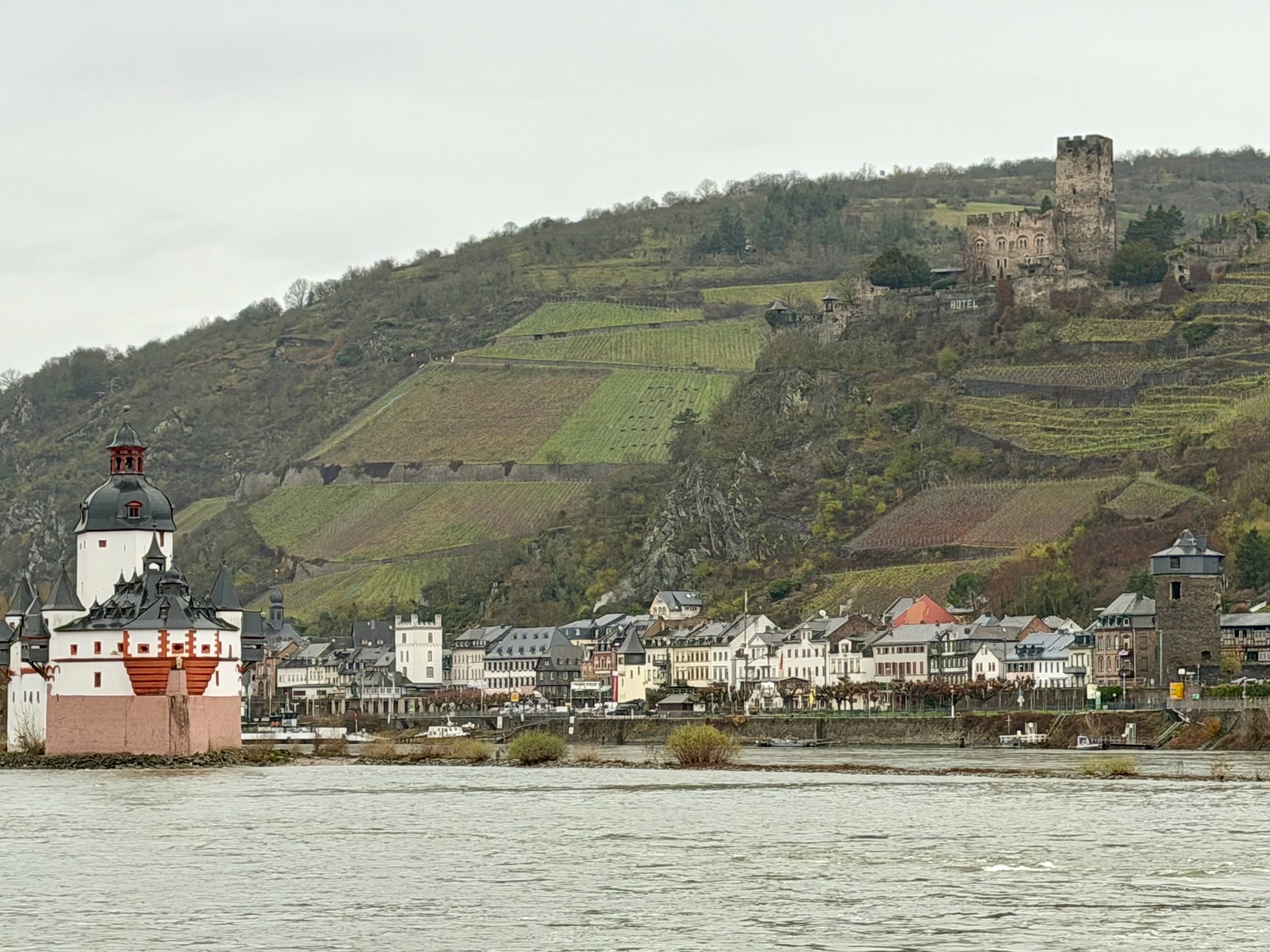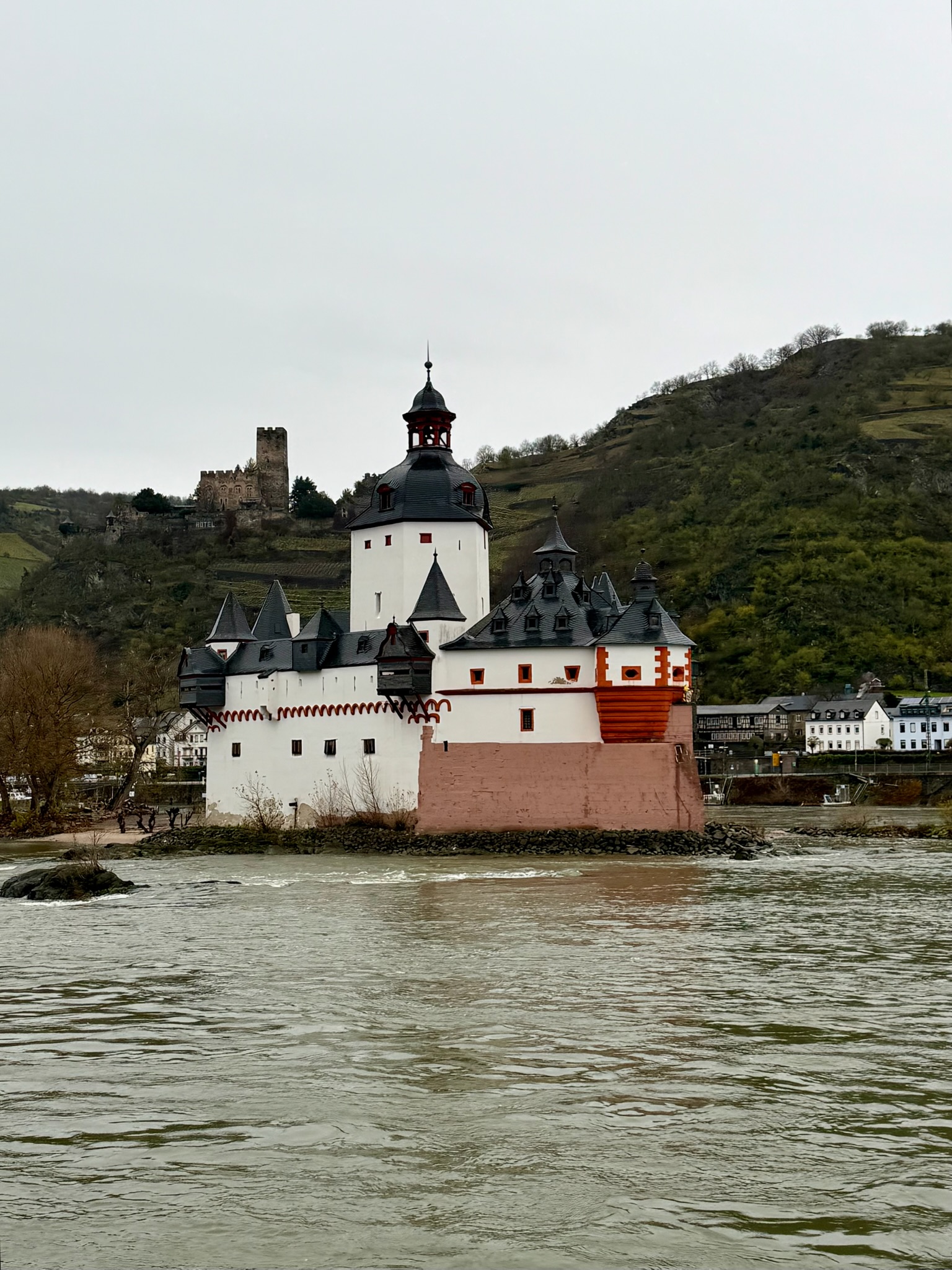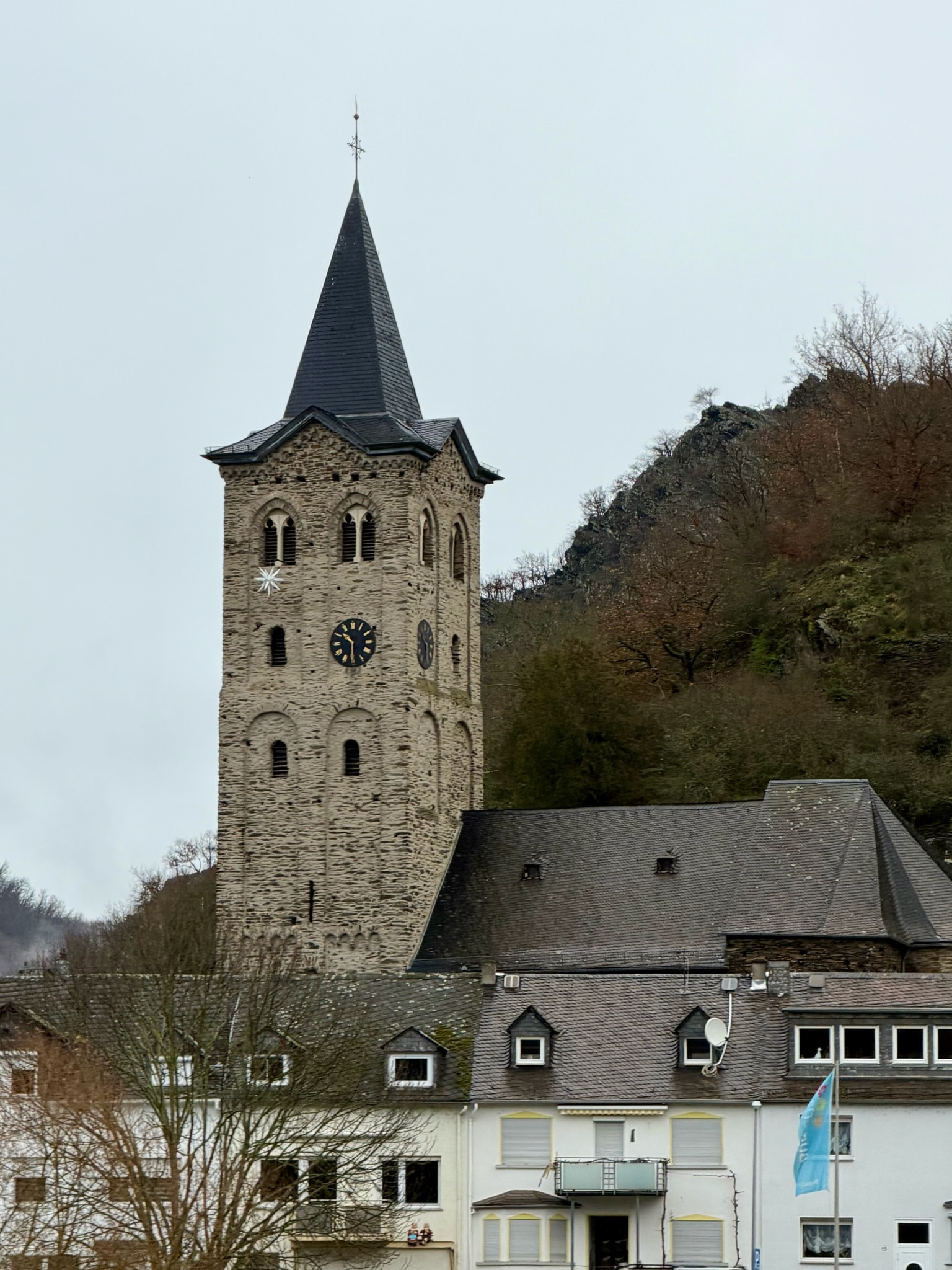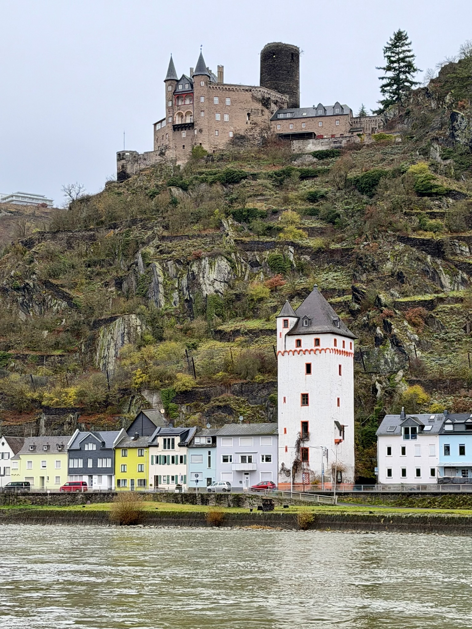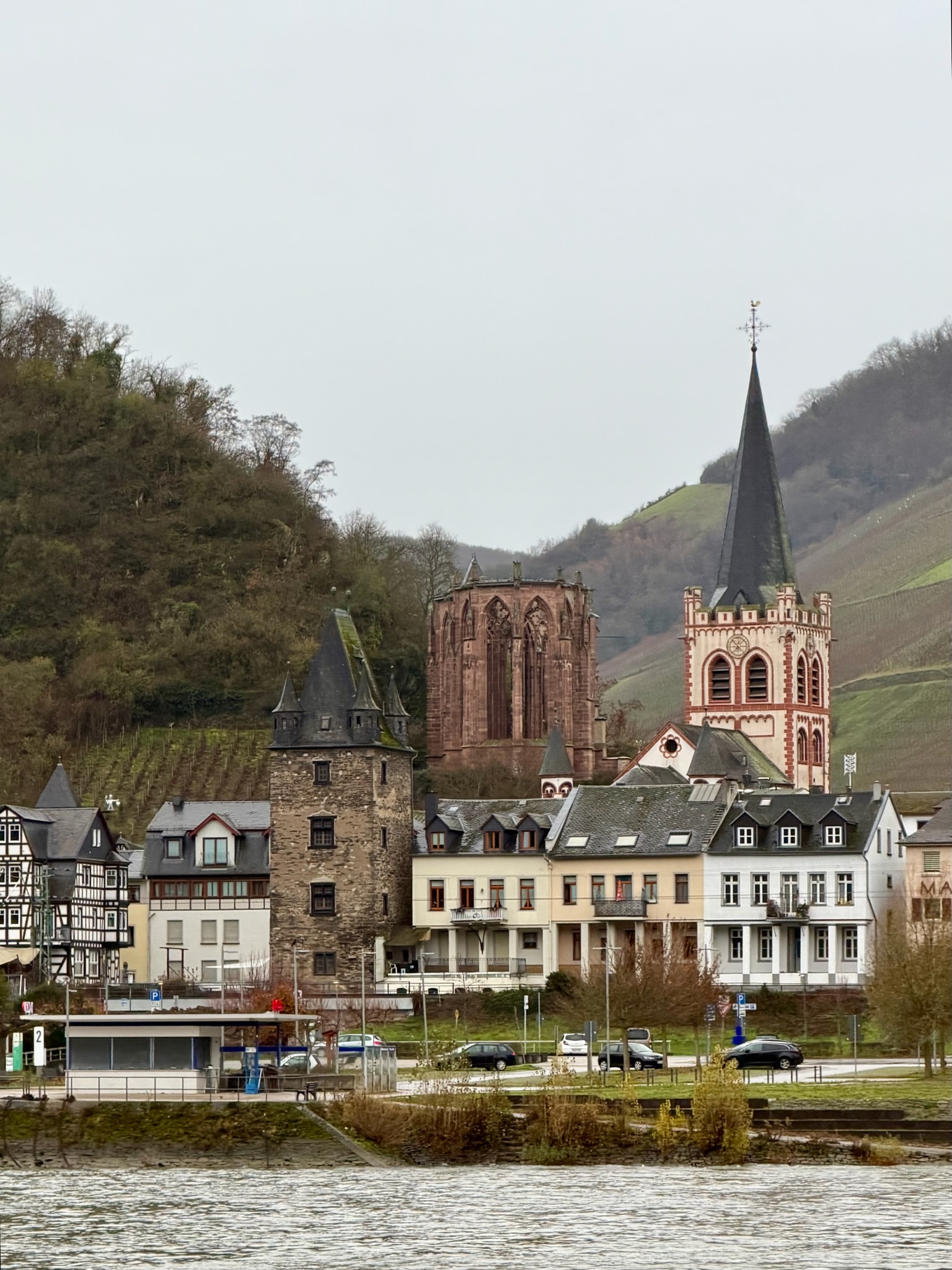 Next up, Kaub, a village with 18 towers and a church that looks like a rocket ship from the right angle!