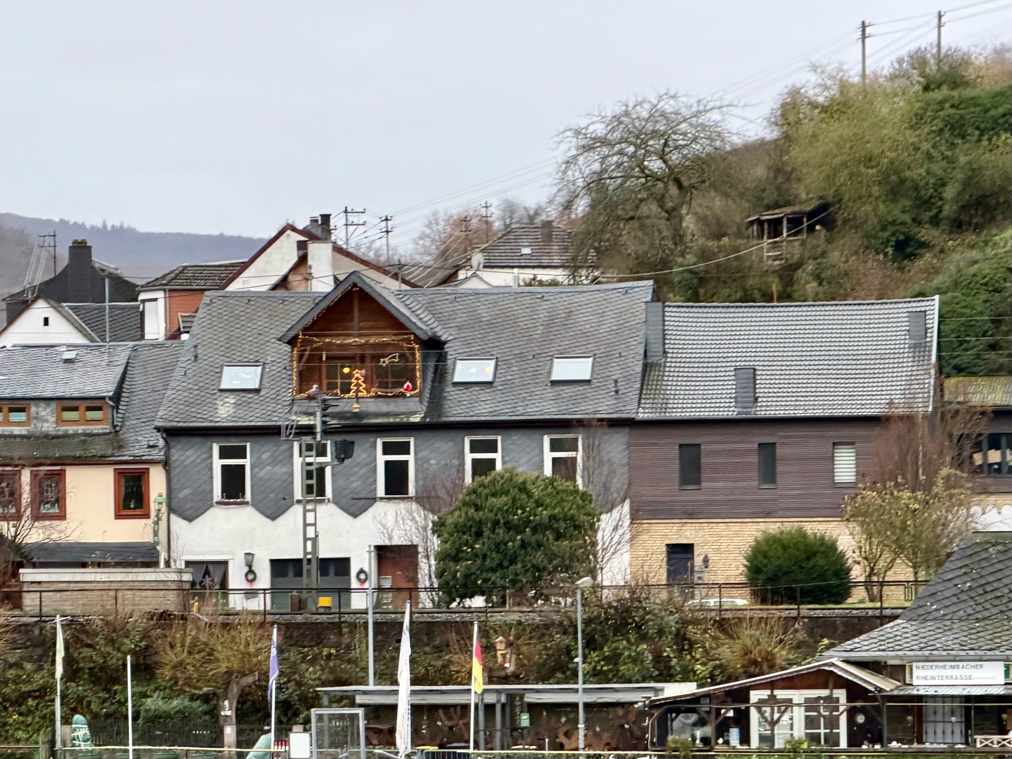 On to Lorch and Niederheimbach! And a house with Christmas decorations on the balcony!