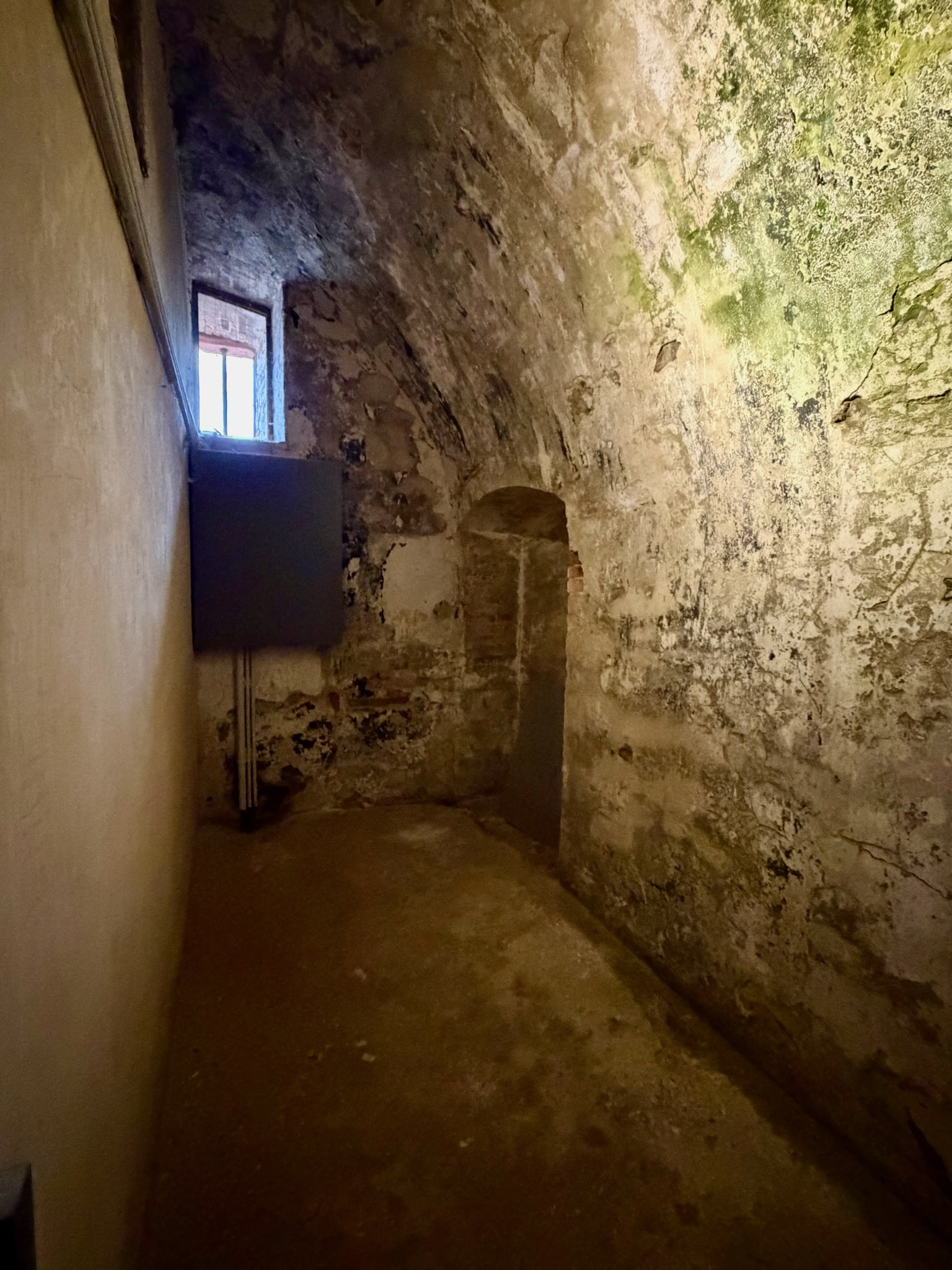If they made it past that – the next wall entry was also guarded by 8 cannons and 16 rifle windows (we helped him count to be sure the information was correct). Further in, he showed us the stone ramparts of the interior buildings – all of which are bricked in arches for extra strength.
