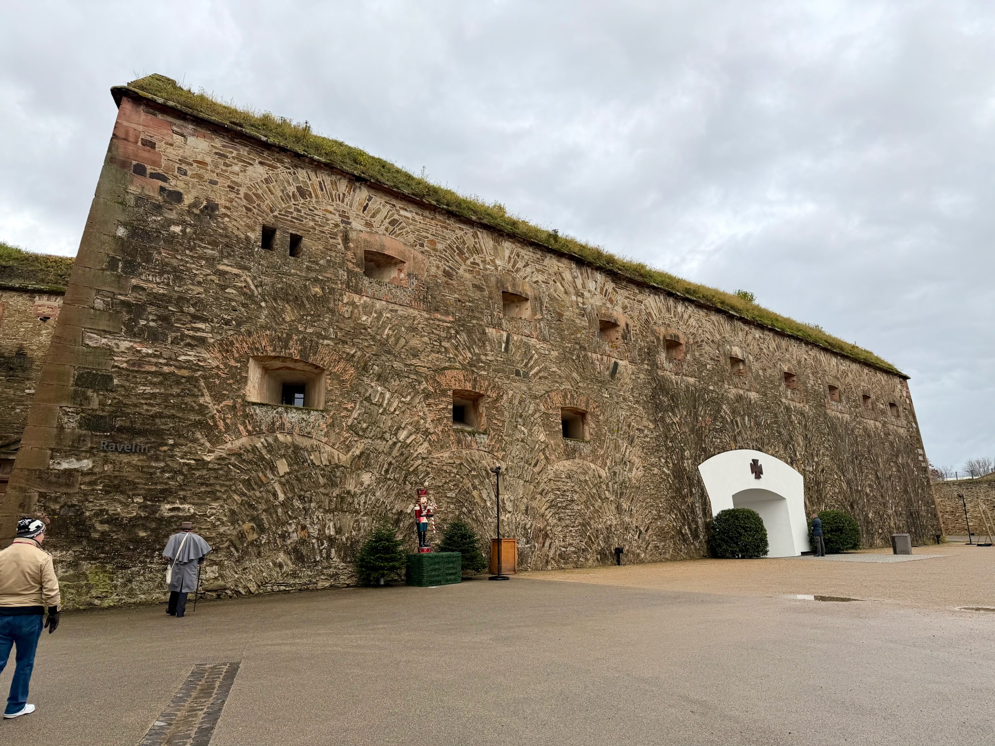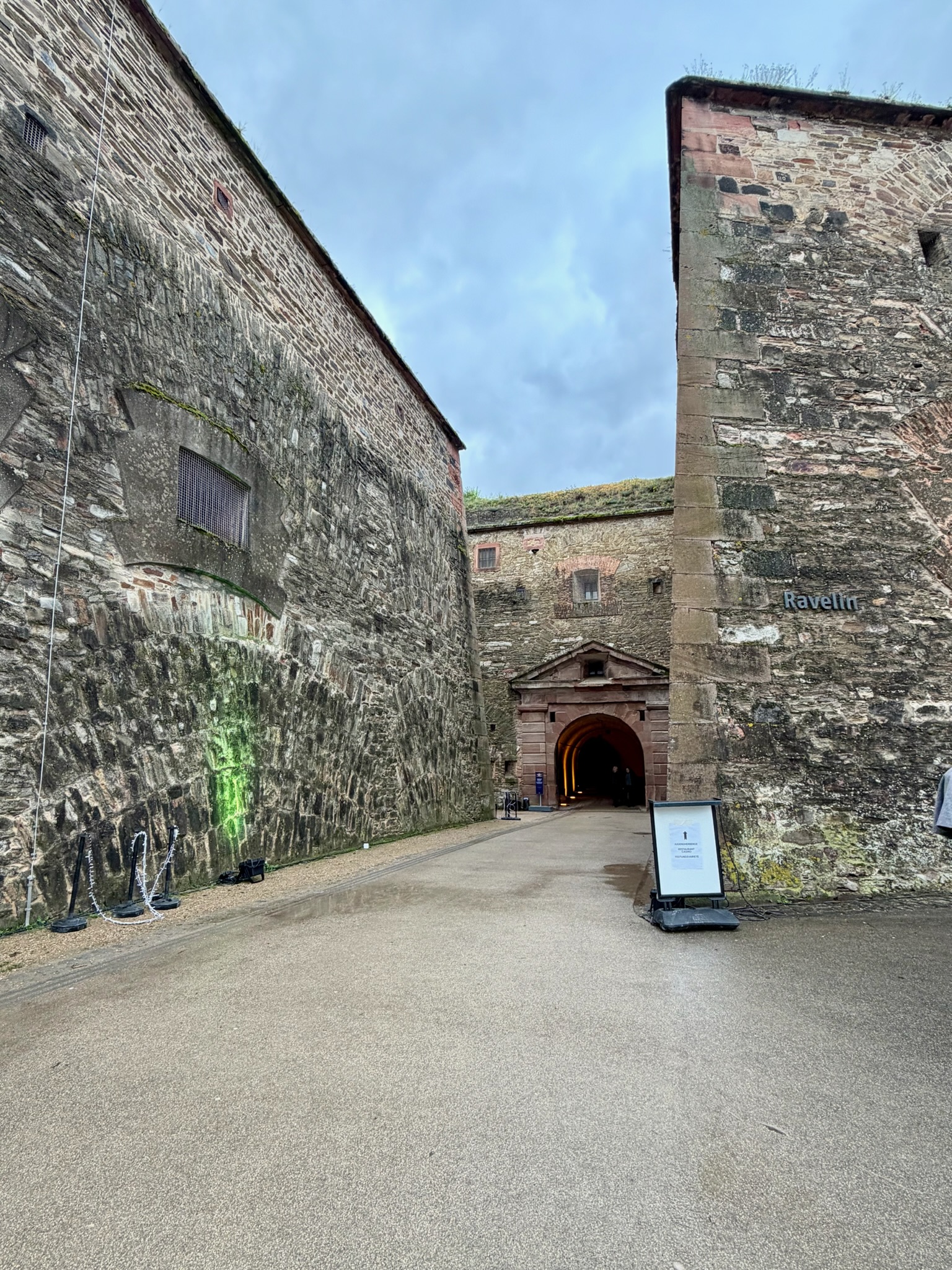 He explained how the fortress was bounded on three sides by shear cliffs down over 300 feet to the Rhein. On the fourth side, anyone trying to tunnel in would be heard through the network of tunnels they had already built. The entrance to the main gate was overlooked by multiple cannon and rifle windows.