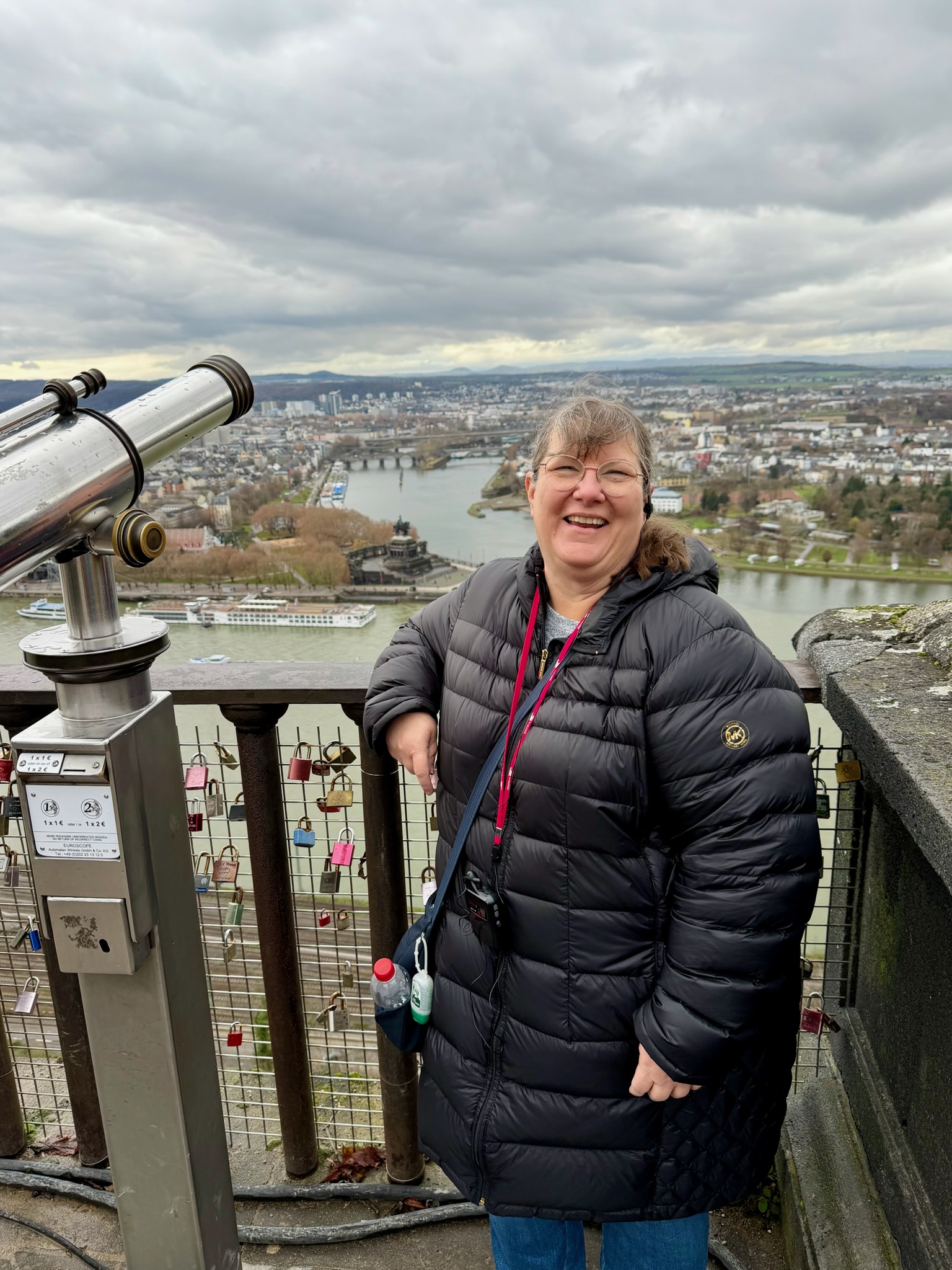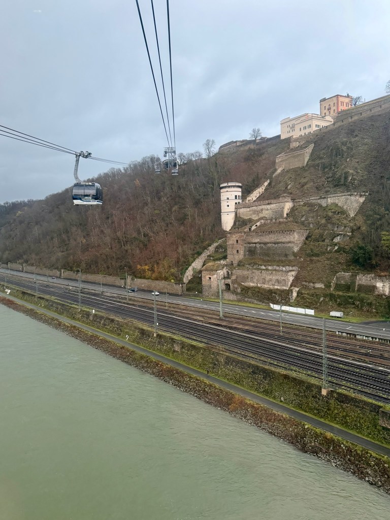 Six others and I met Michael, our tour guide at Guest Services in the lobby for our tour: The Fortress of Ehrenbreitstein. Michael is an actor with a passion for the history of the fortress. He came in full costume of an early 1800’s English gentleman and told us that after we rode the gondolas up to the fortress, we would step out of a Time Machine to the year 1836. He took on the persona of an Engineer, a lieutenant in His Majesty’s Corp of Engineers, who was enlisting us to help with his espionage on the fortress.